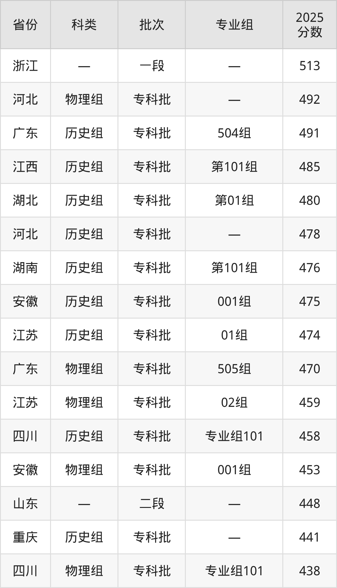 而浙江地区考生的分数门槛最高,2025年上海工艺美术职业学院在浙江招生最低分为513分,考生至少要超一段线23分才有可能被录取。
