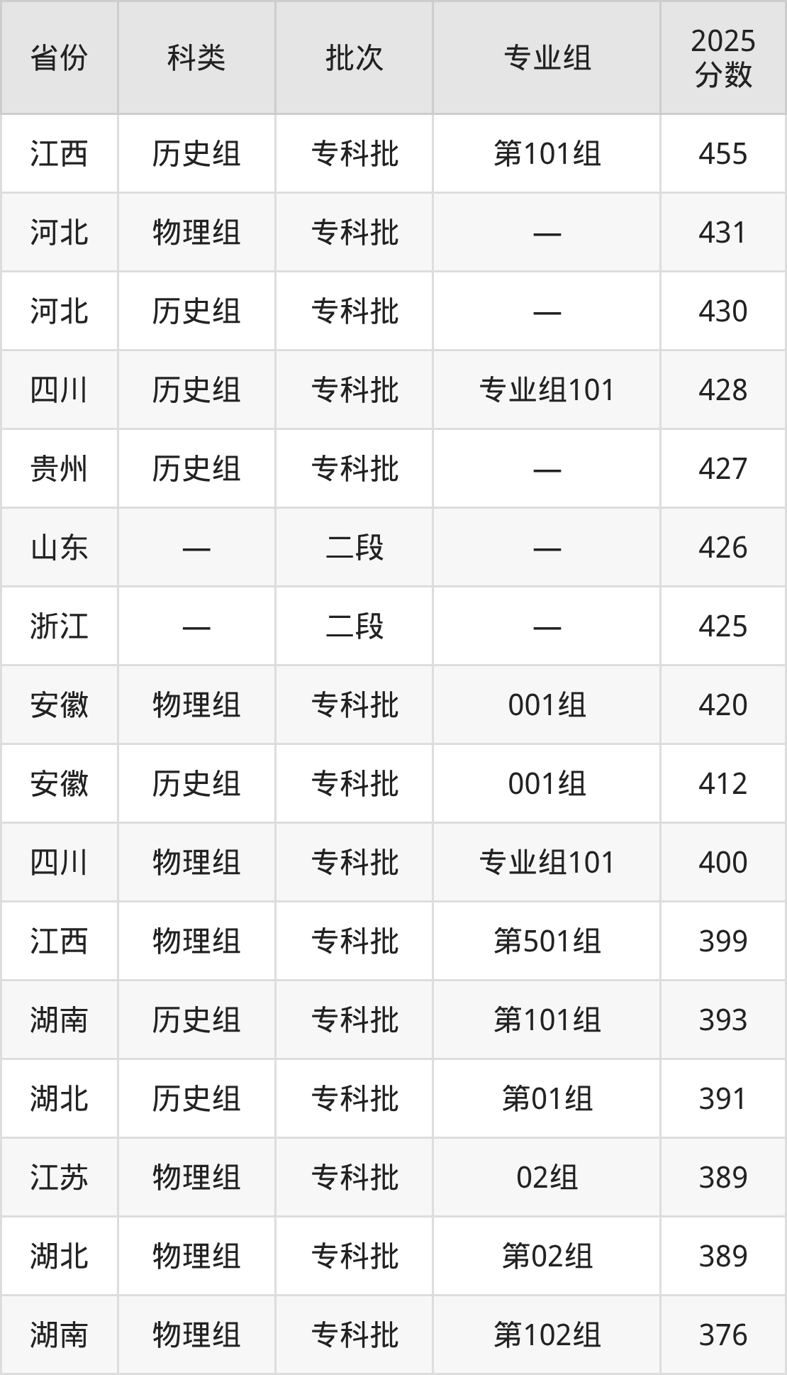 而江西地区历史组考生的分数门槛最高,2025年重庆工信职业学院第101组在江西招生最低分为455分,考生至少要超专科线165分才有可能被录取。