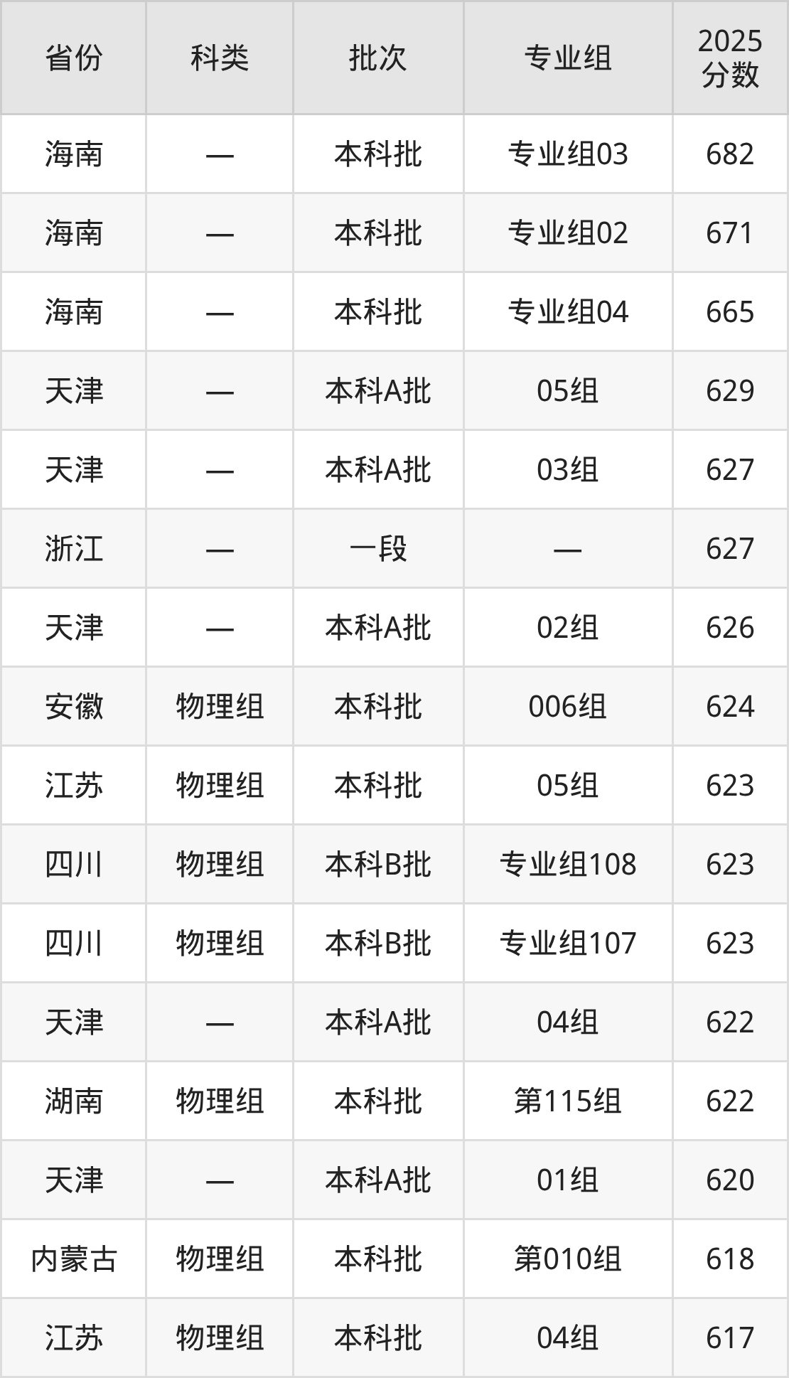 而海南地区考生的分数门槛最高,2025年暨南大学专业组03在海南招生最低分为682分,考生至少要超本科线202分才有可能被录取。