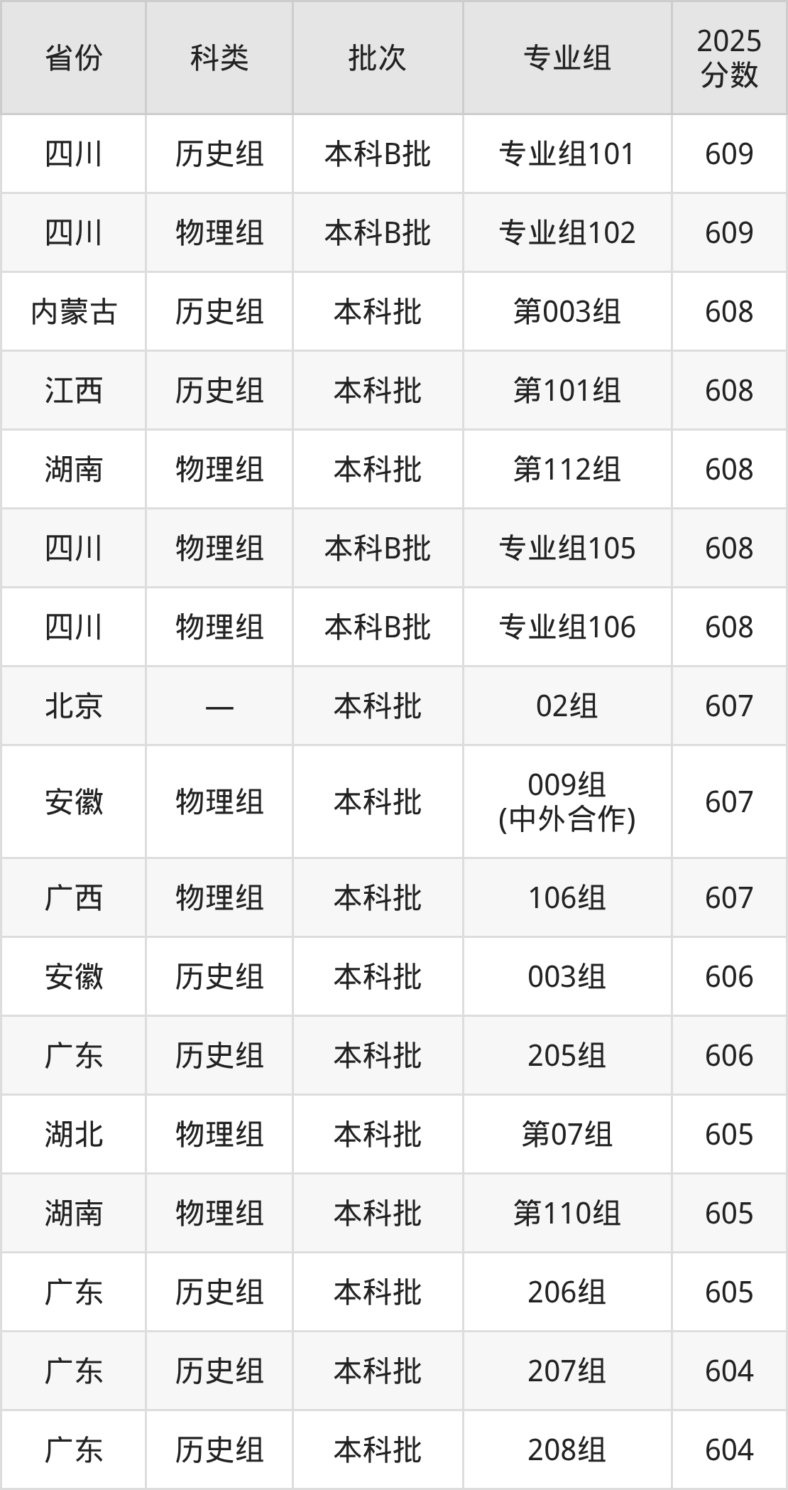 目前能查询到的最新分数为2025年招录数据,2026年暨南大学录取分数线会在高考招录结束后公布,本届考生可以利用往年分数预估录取概率。