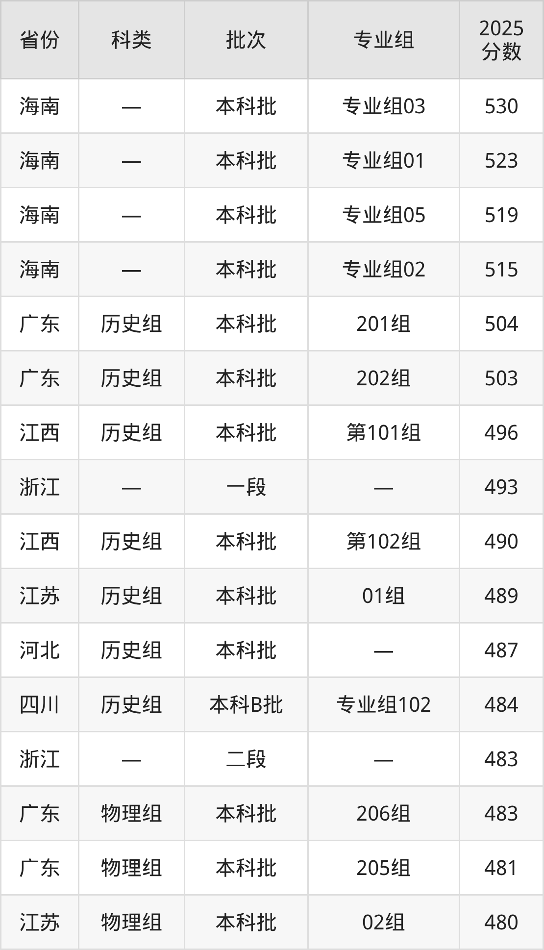 2025年广州新华学院在全国普通批次招生的录取分数范围位于346~530分之间,其中省内分数范围为472分~504分,历史组最低分专业组为“202组”,考生503分即可报考,物理组最低分专业组为“203组”,考生472分即可报考。