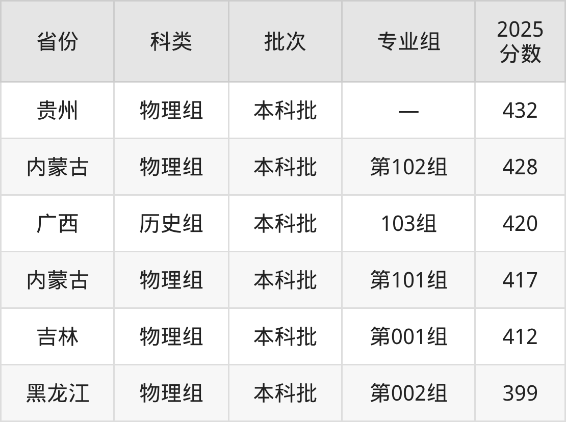 西昌学院在省外招生的最低分为399分,其中黑龙江地区物理组考生上西昌学院的分数门槛最低,考生成绩超本科线39分(399分)可上。其次是吉林物理组考生,上西昌学院至少要超本科线72分(412分)。