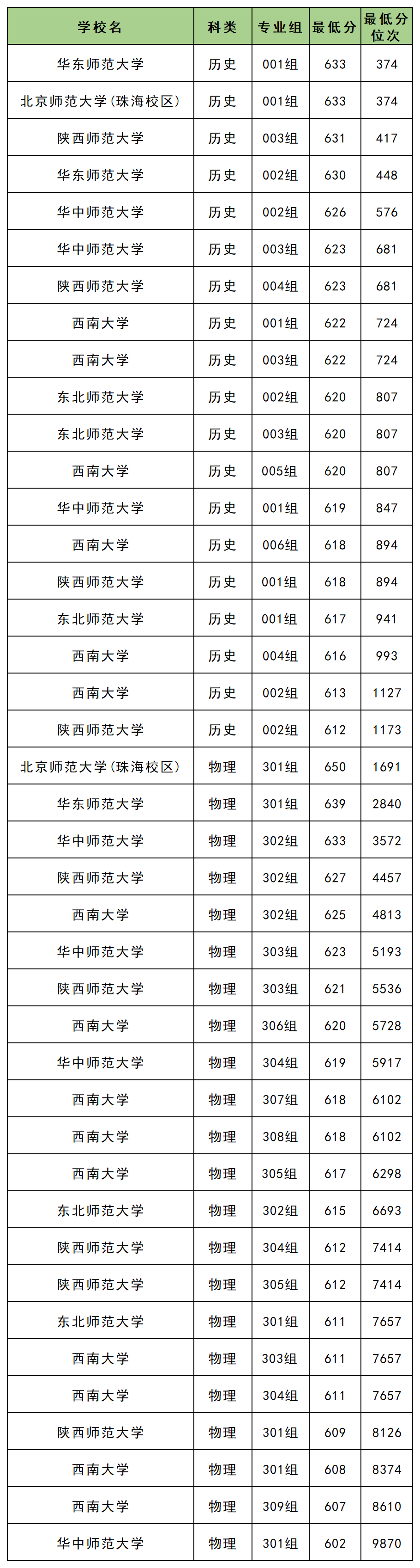 因为在提前批招生院校较多,受到篇幅限制,本文就以国家公费师范生、警校和定向士官为例,整理出这三类院校在山西提前批的录取分数线。