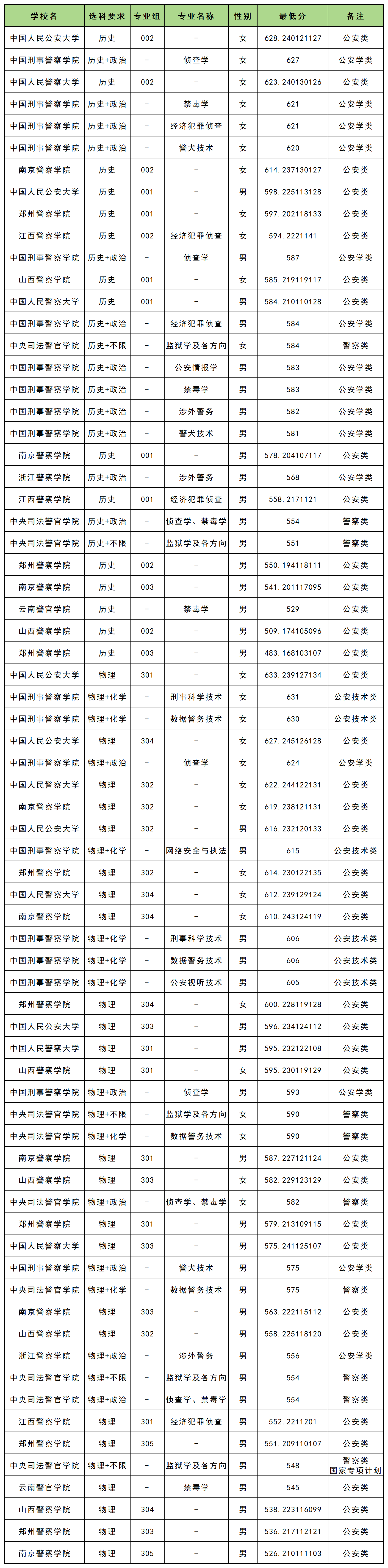 代表院校:中国人民公安大学、中央司法警官学院、中国刑事警察学院等。