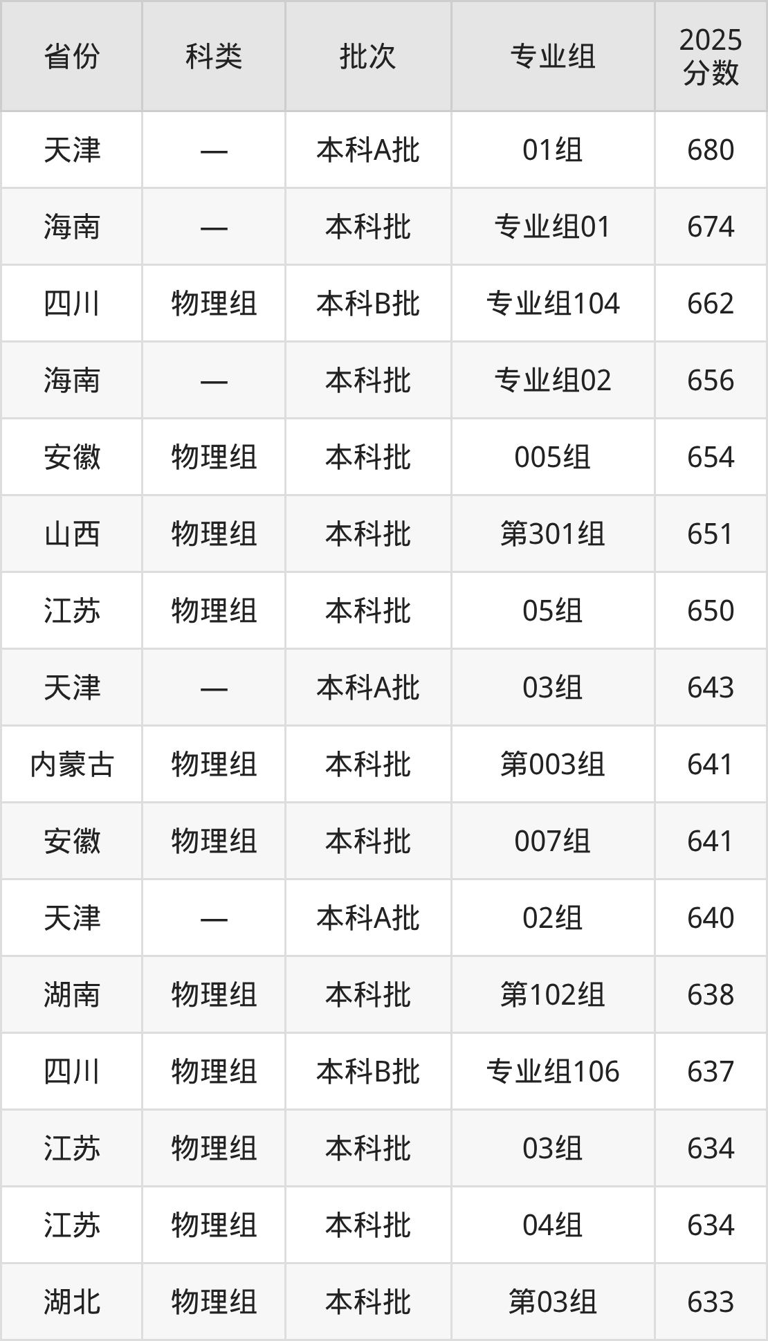 而海南地区考生的分数门槛最高,2025年天津医科大学专业组01在海南招生最低分为674分,考生至少要超本科线194分才有可能被录取。