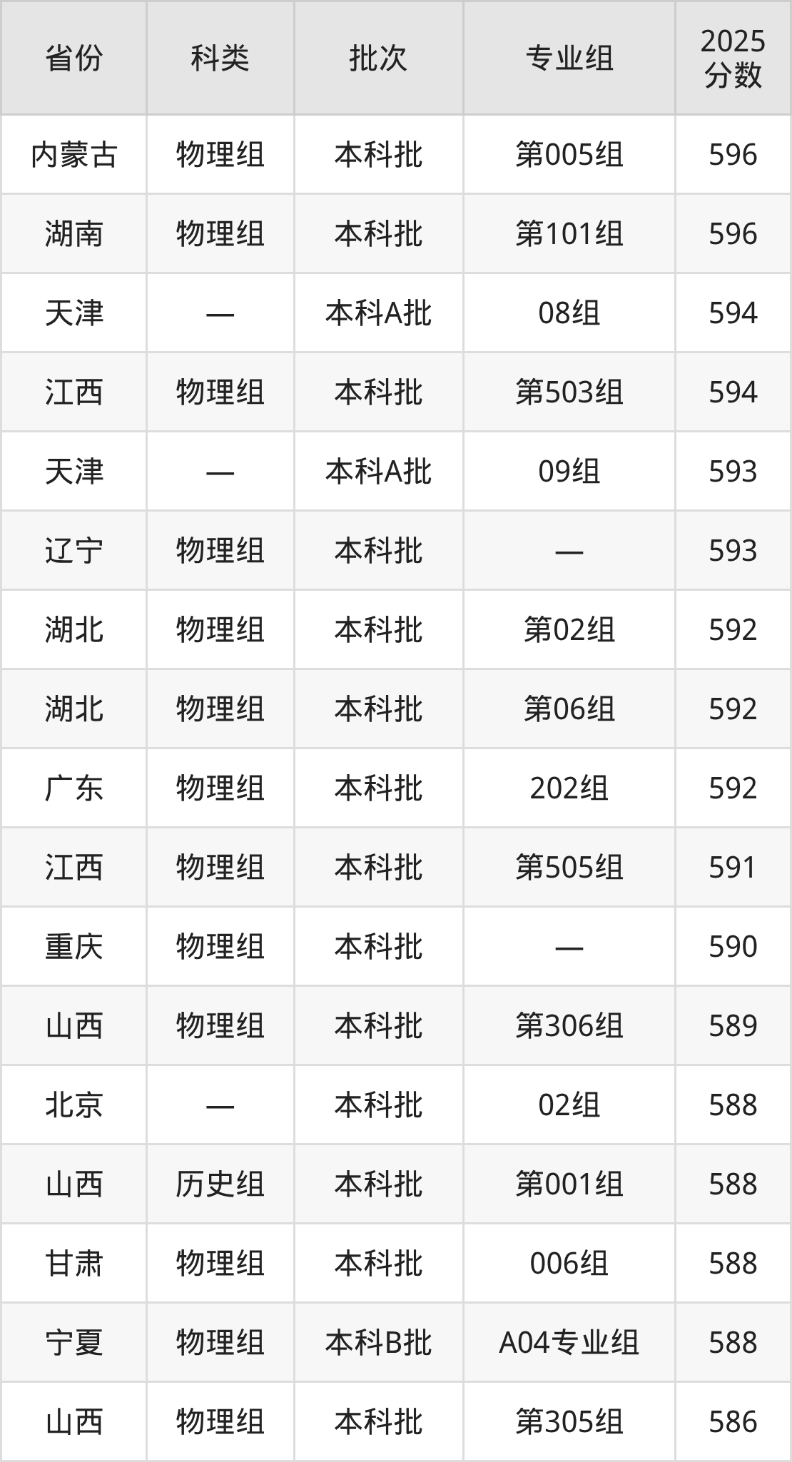 下面是天津医科大学2025年在全国各省的录取分数线一览表,供参考: