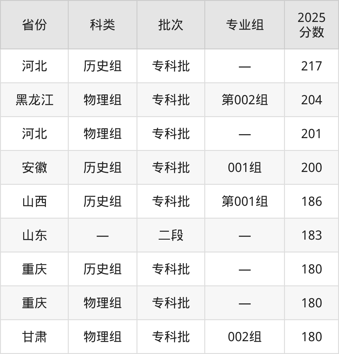 下面是景德镇陶瓷职业技术学院2025年在全国各省的录取分数线一览表,供参考:
