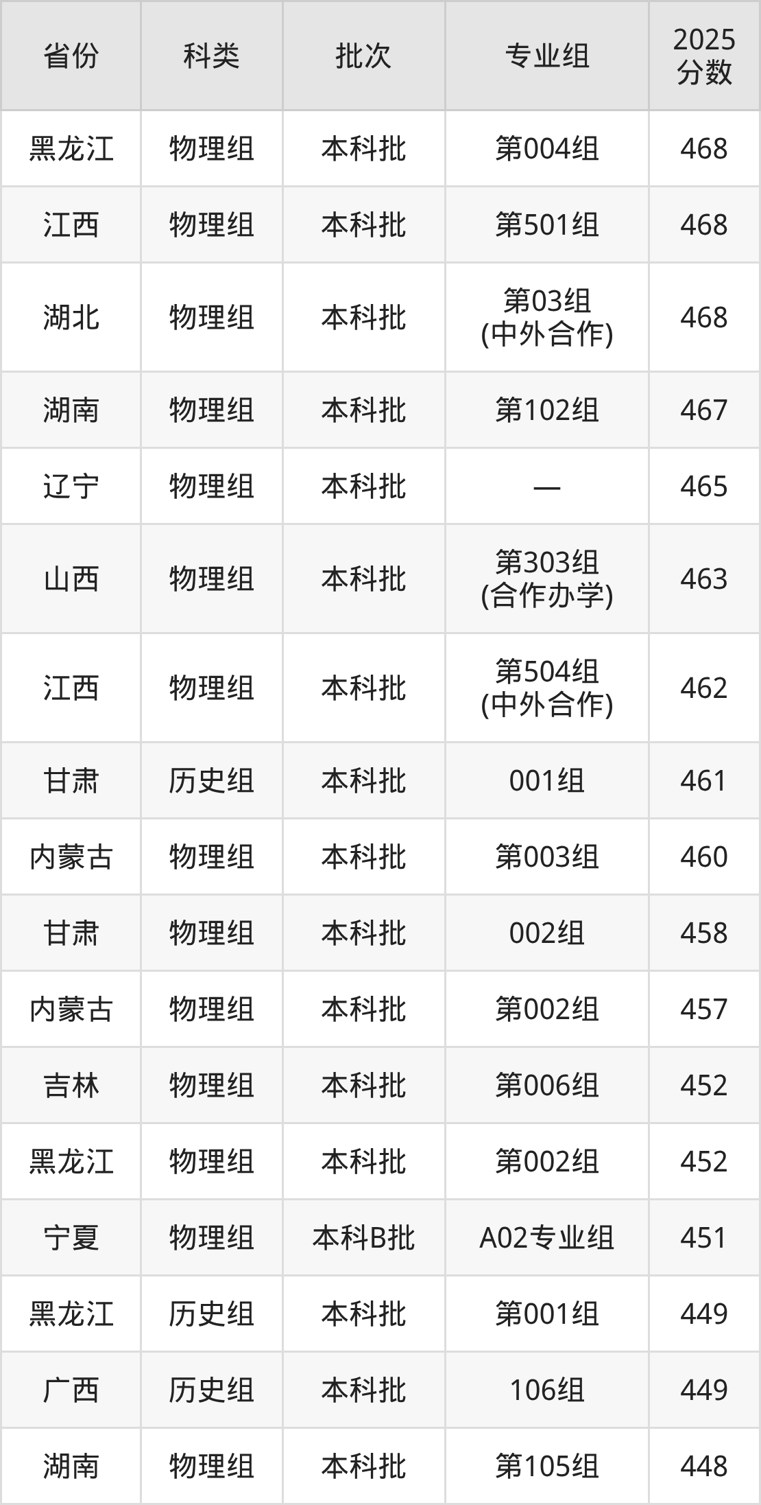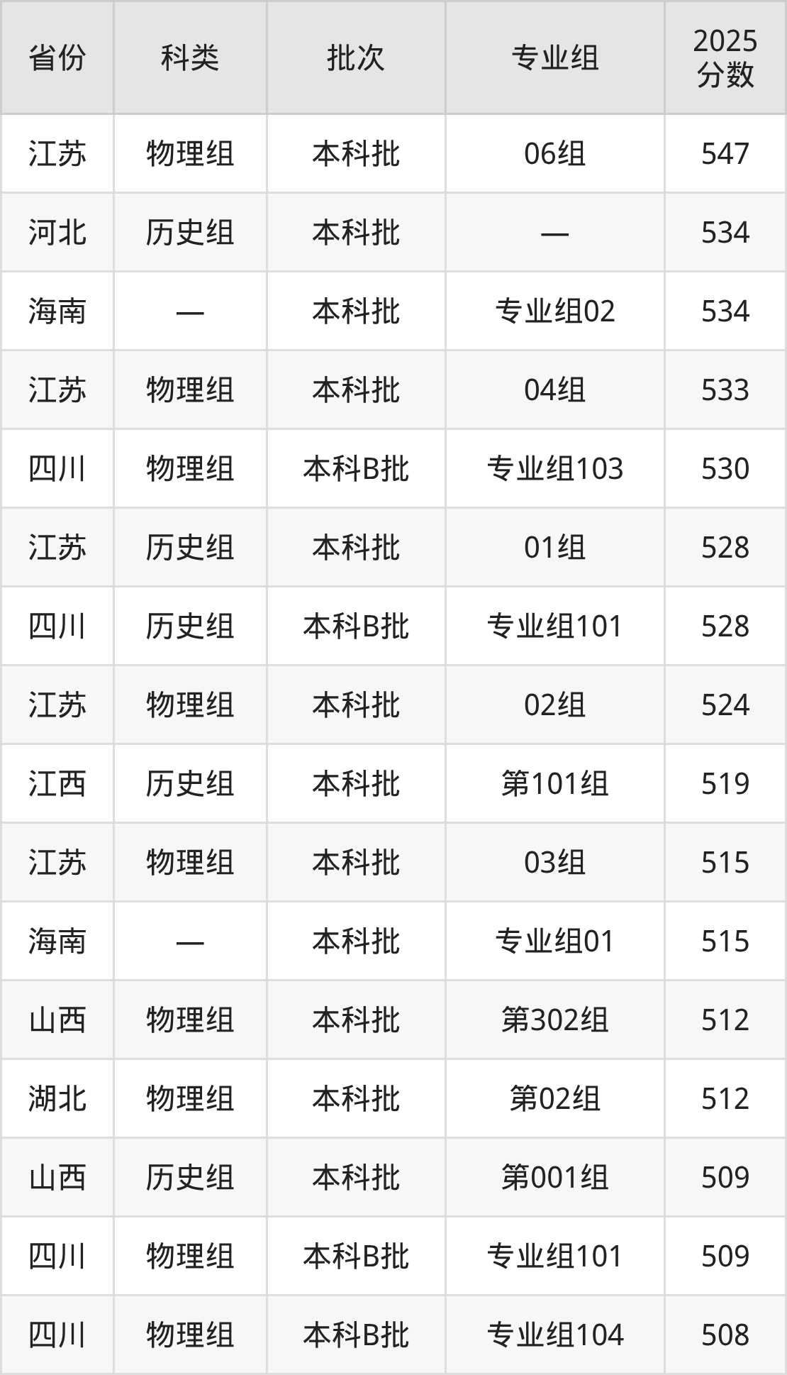 而江苏地区物理组考生的分数门槛最高,2025年吉林医药学院06组在江苏招生最低分为547分,考生至少要超本科线84分才有可能被录取。