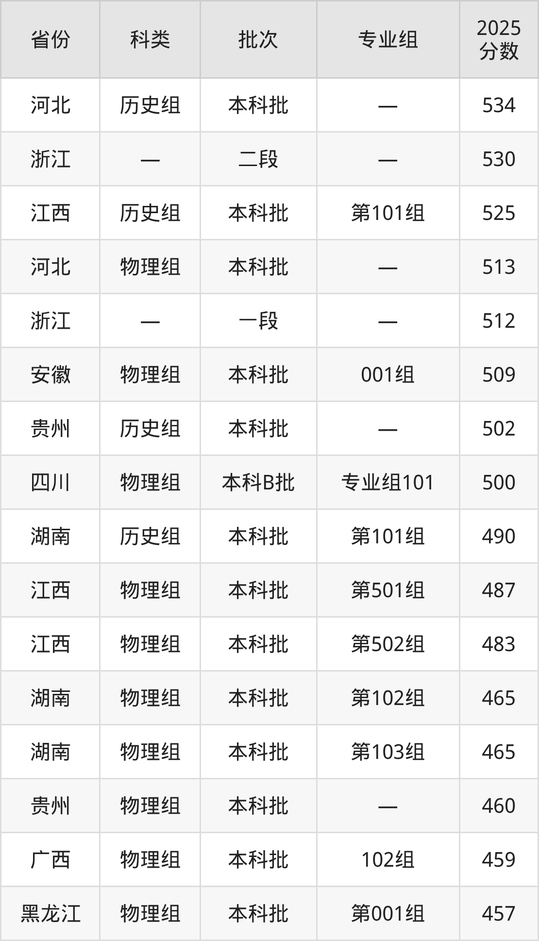 而河北地区历史组考生的分数门槛最高,2025年浙江药科职业大学在河北招生最低分为534分,考生至少要超本科线57分才有可能被录取。