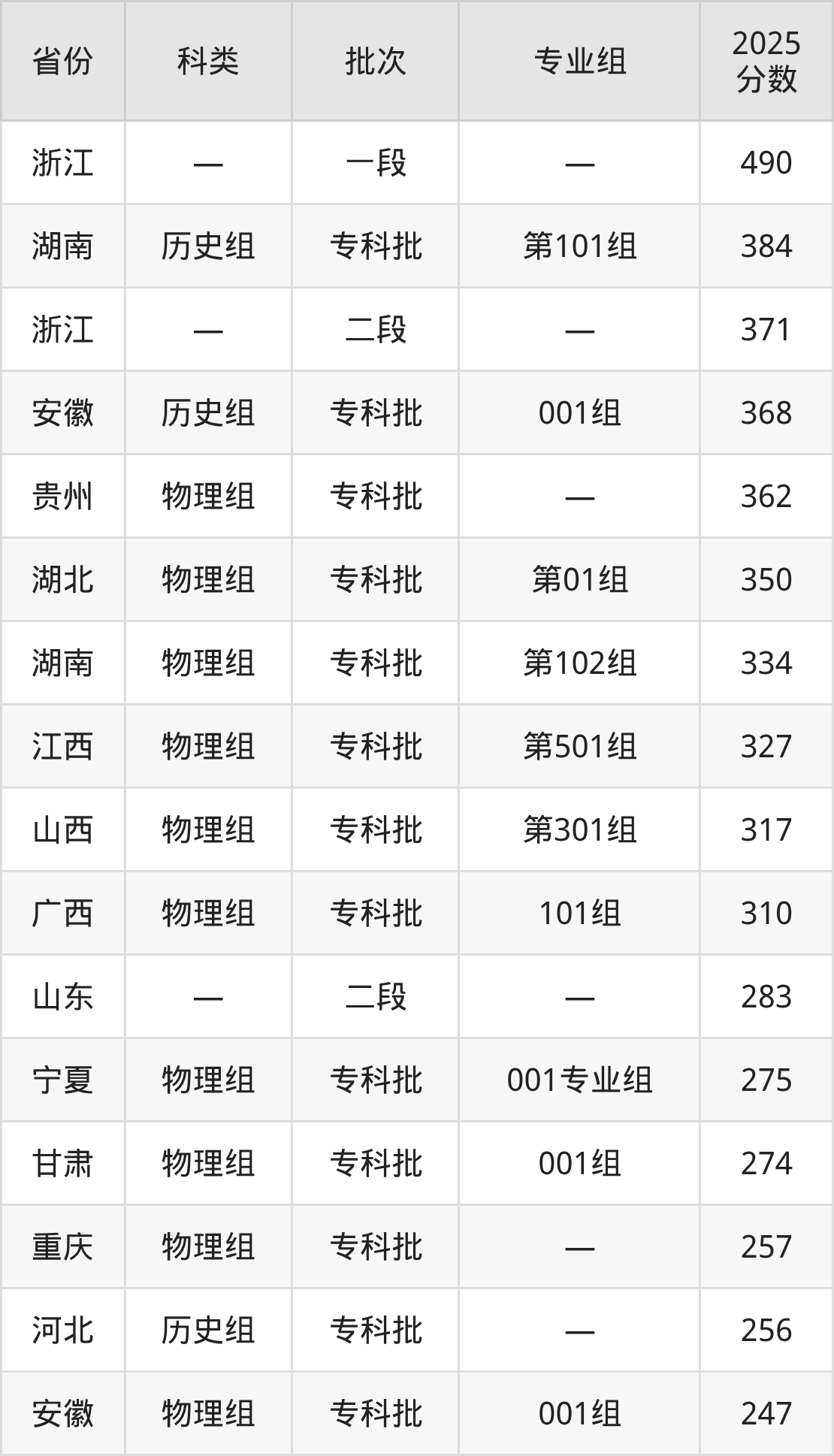 而浙江地区考生的分数门槛最高,2025年硅湖职业技术学院在浙江招生最低分为490分,考生至少要超一段线0分才有可能被录取。