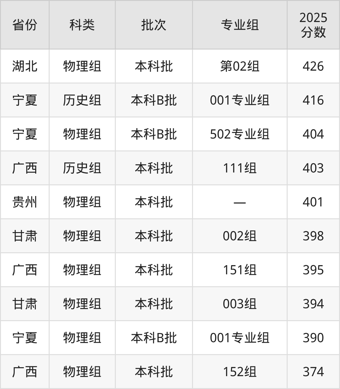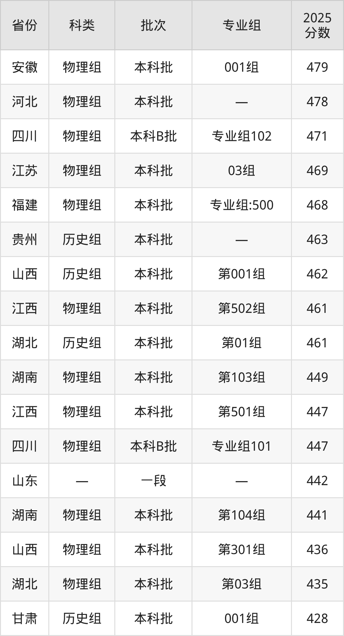 2025年武昌工学院在全国普通批次招生的录取分数范围位于374~507分之间,其中省内分数范围为426分~461分,历史组最低分专业组为“第01组”,考生461分即可报考,物理组最低分专业组为“第02组”,考生426分即可报考。