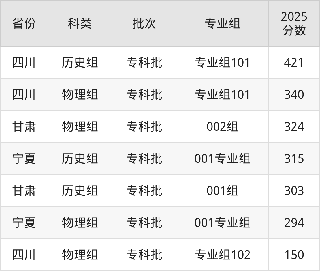 下面是四川幼儿师范高等专科学校2025年在全国各省的录取分数线一览表,供参考: