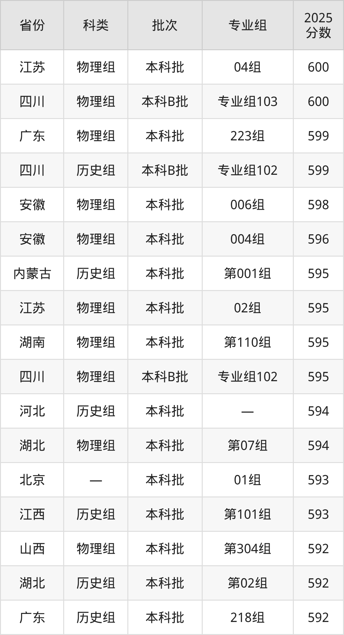 下面是华中农业大学2025年在全国各省的录取分数线一览表,供参考:
