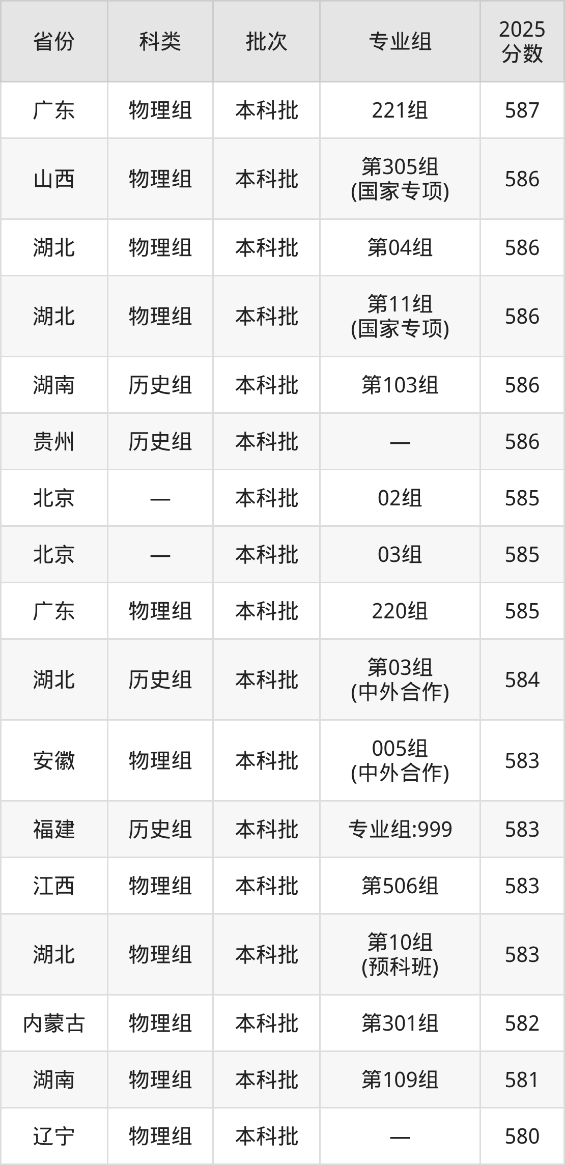 2025年华中农业大学在全国普通批次招生的录取分数范围位于493~669分之间,其中省内分数范围为568分~594分,物理组最低分专业组为“第09组(中外合作)”,考生568分即可报考,历史组最低分专业组为“第03组(中外合作)”,考生584分即可报考。