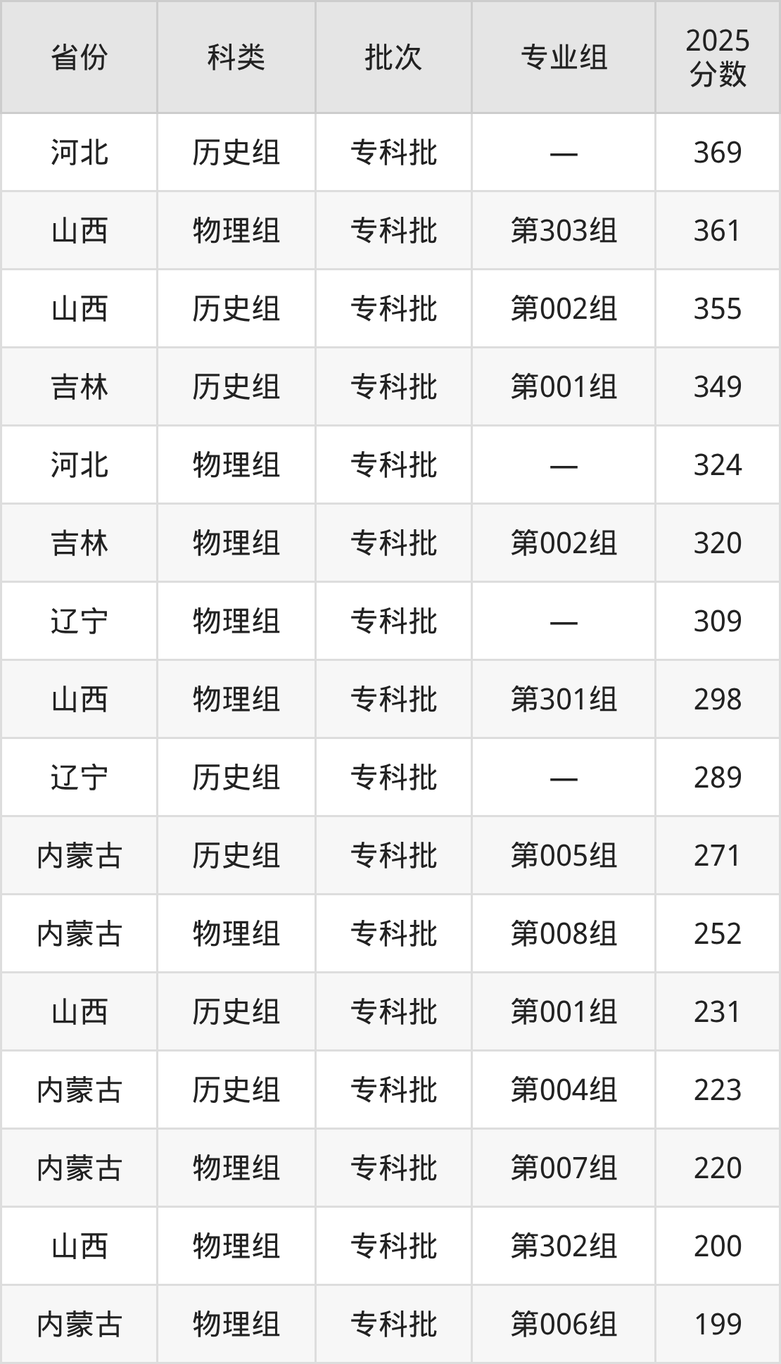 而河北地区历史组考生的分数门槛最高,2025年赤峰应用技术职业学院在河北招生最低分为369分,考生至少要超专科线169分才有可能被录取。