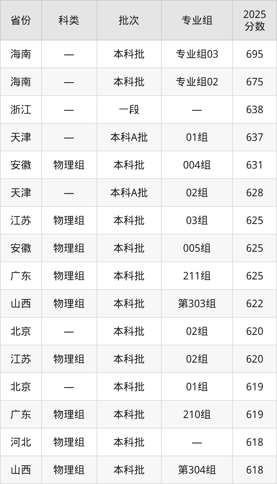华东理工大学2026年录取分数需在高招结束官方数据公布后更新,2026届有意向报考该校的同学,可以在填报志愿时参考华东理工大学2025年录取分数线: