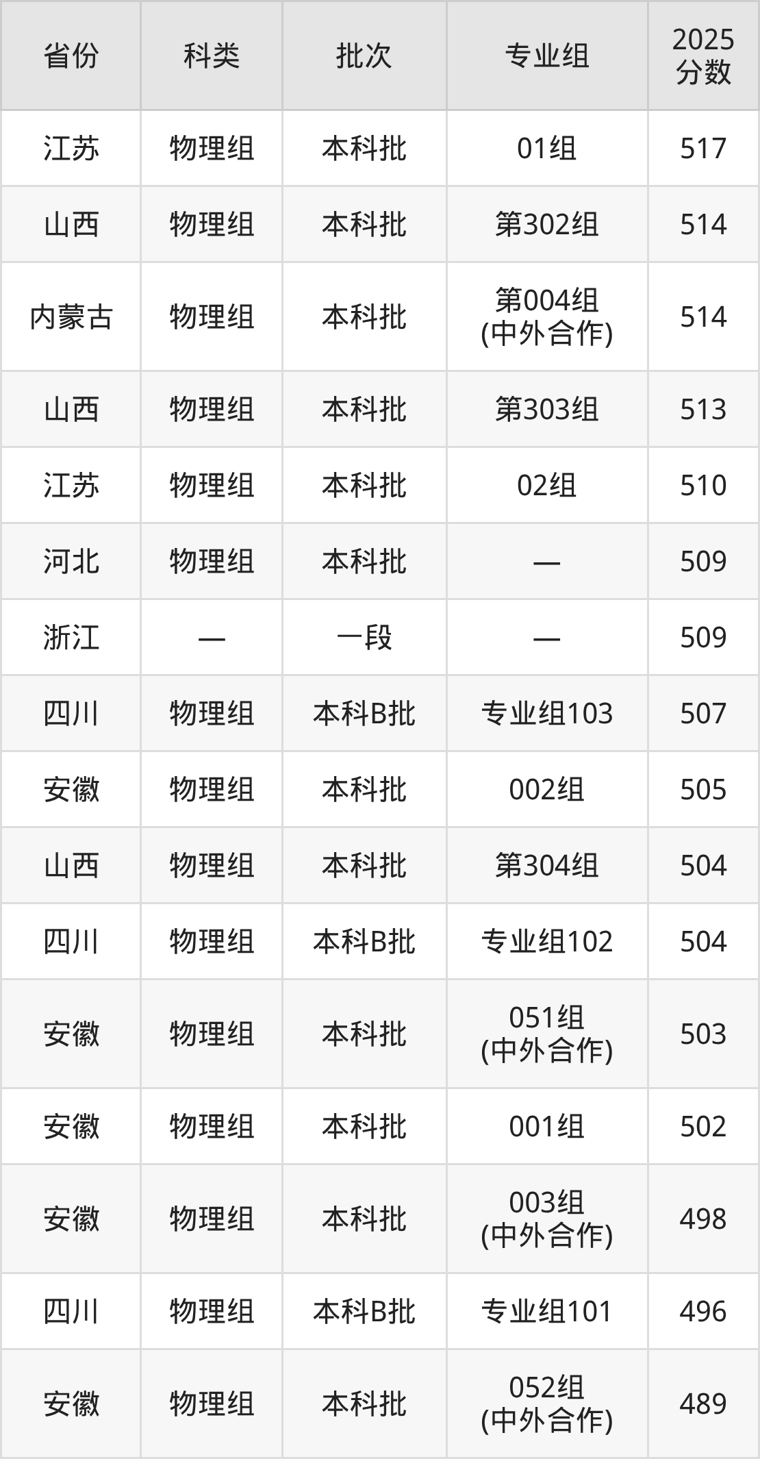 而江苏地区物理组考生的分数门槛最高,2025年吉林化工大学01组在江苏招生最低分为517分,考生至少要超本科线54分才有可能被录取。
