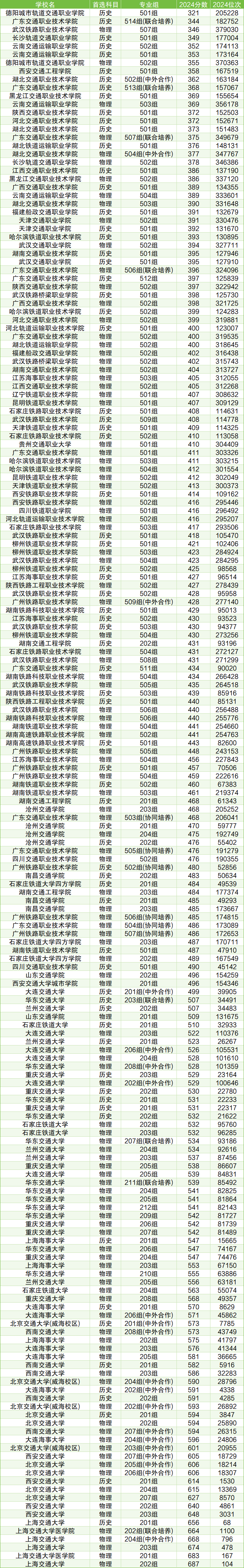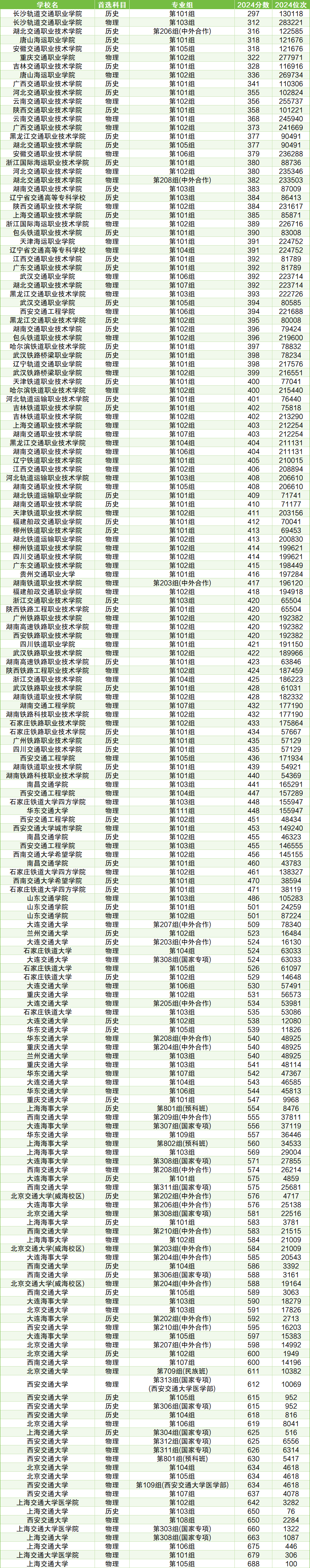 三、2024年交通类大学录取分数线
