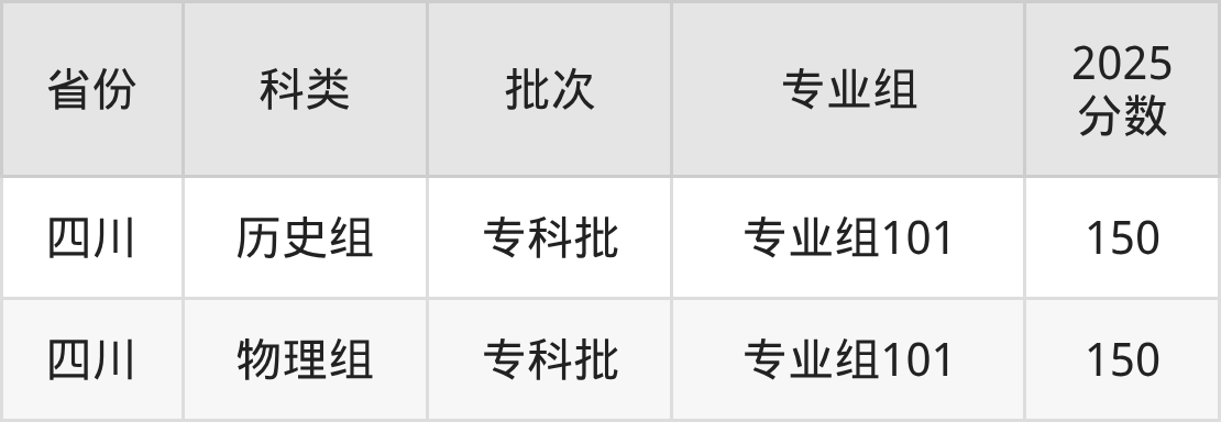 2025年遂宁能源职业学院在全国普通批次招生的录取分数在150分,其中省内分数在150分,历史组最低分专业组为“专业组101”,考生150分即可报考,物理组最低分专业组为“专业组101”,考生150分即可报考。