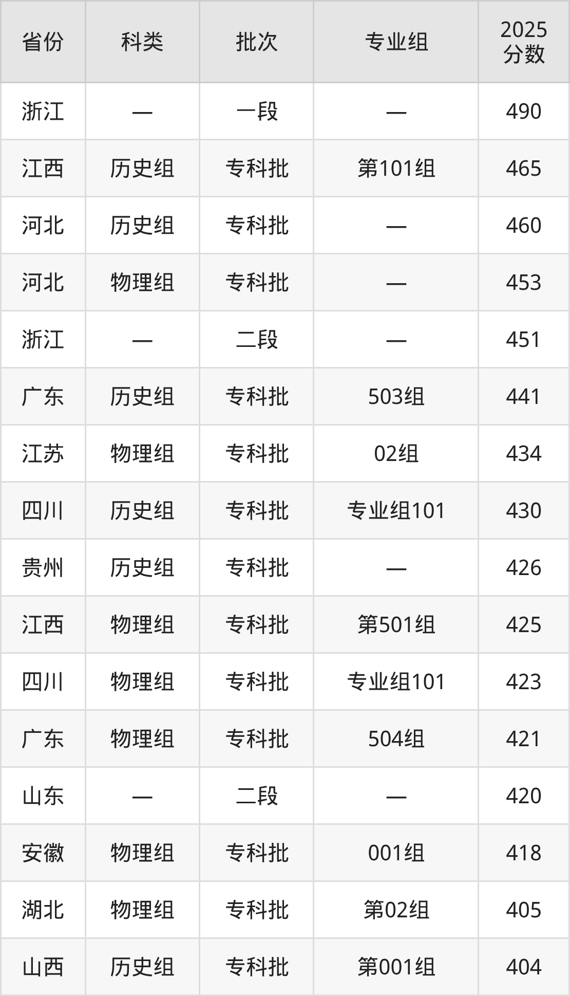 而浙江地区考生的分数门槛最高,2025年四川航天职业技术学院在浙江招生最低分为490分,考生至少要超一段线0分才有可能被录取。