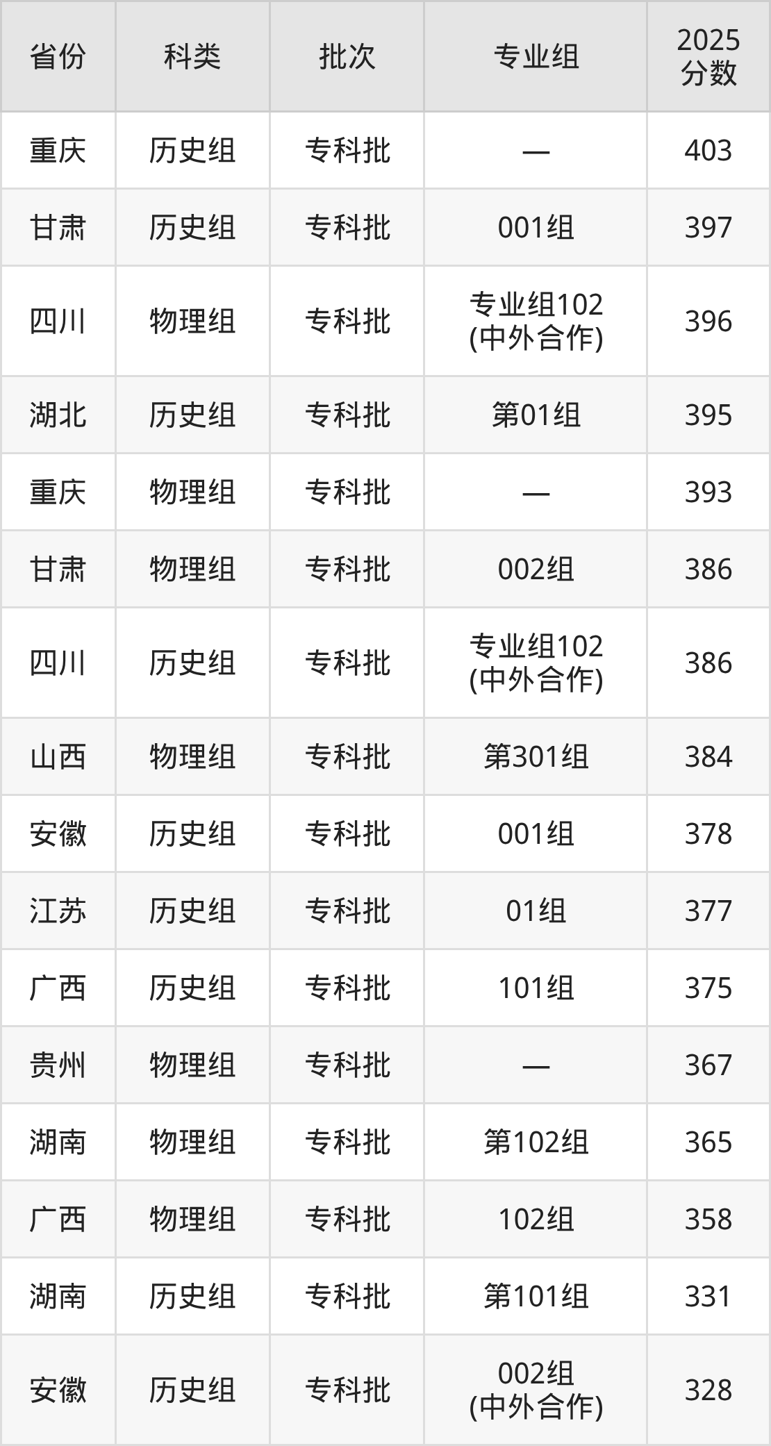 2025年四川航天职业技术学院在全国普通批次招生的录取分数范围位于328~490分之间,其中省内分数范围为386分~430分,历史组最低分专业组为“专业组102(中外合作)”,考生386分即可报考,物理组最低分专业组为“专业组102(中外合作)”,考生396分即可报考。
