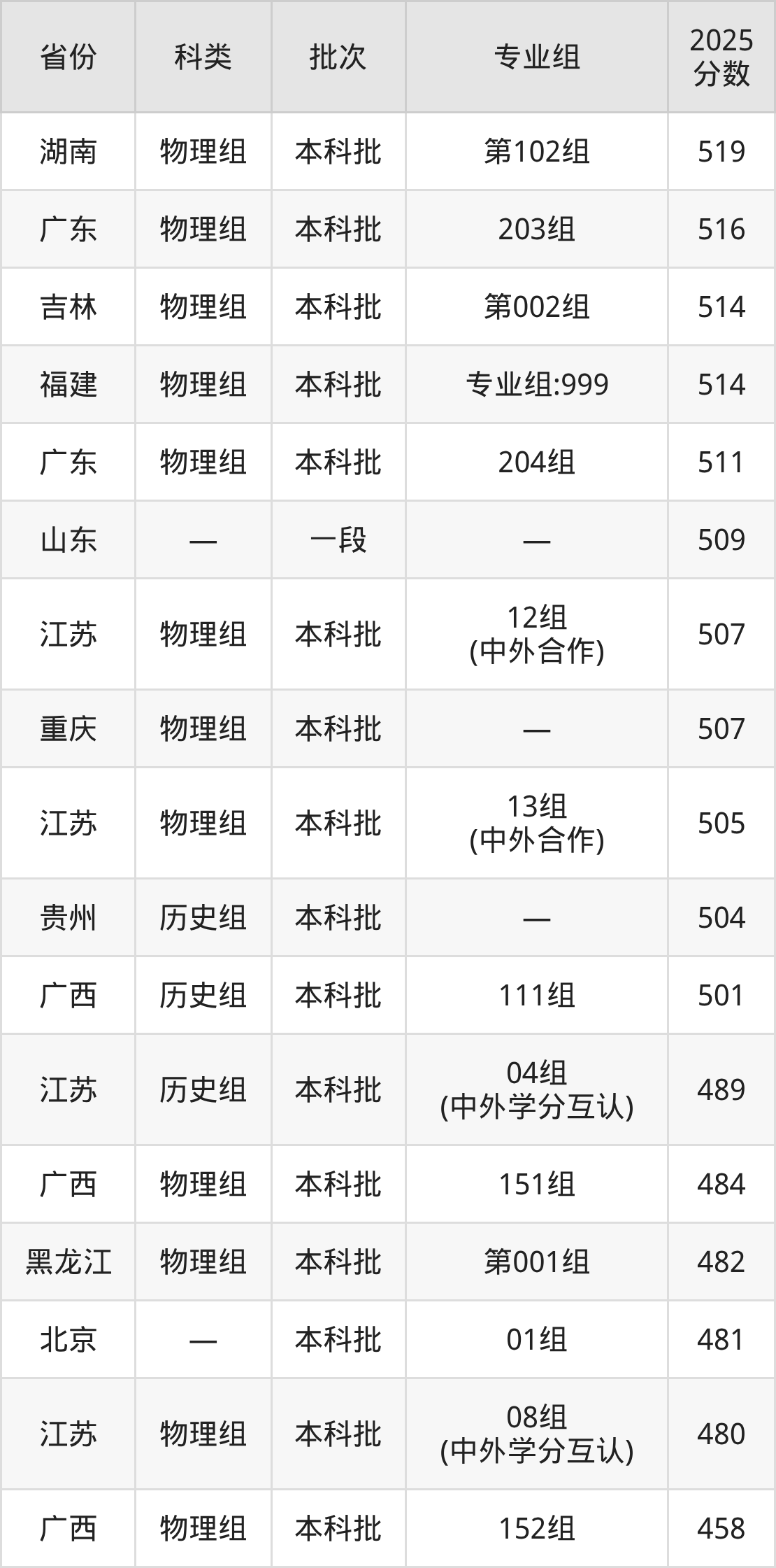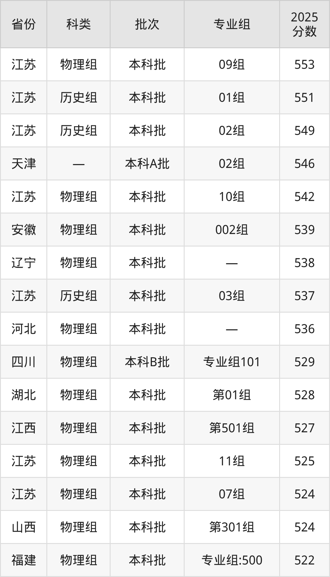 2025年常州工学院在全国普通批次招生的录取分数范围位于444~553分之间,其中省内分数范围为480分~553分,物理组最低分专业组为“08组(中外学分互认)”,考生480分即可报考,历史组最低分专业组为“04组(中外学分互认)”,考生489分即可报考。
