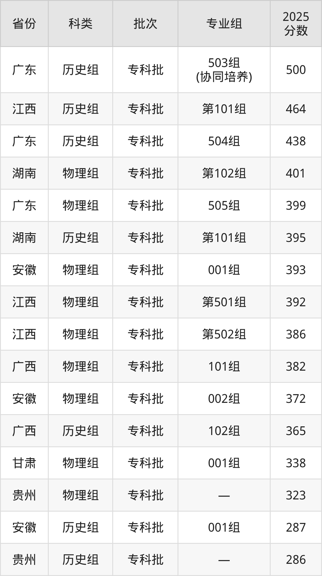 而江西地区历史组考生的分数门槛最高,2025年中山火炬职业技术学院第101组在江西招生最低分为464分,考生至少要超专科线174分才有可能被录取。
