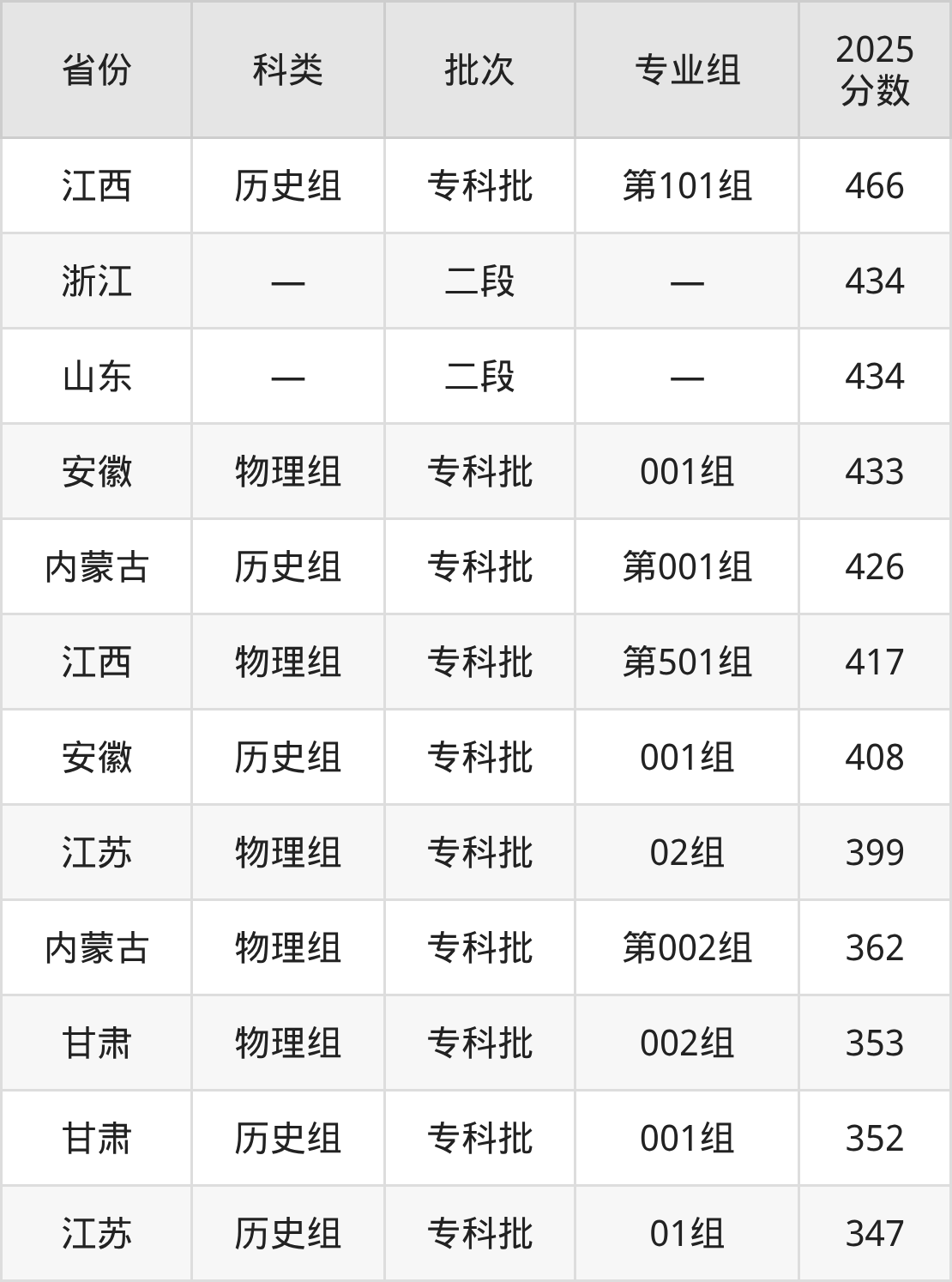 而江西地区历史组考生的分数门槛最高,2025年河南职业技术学院第101组在江西招生最低分为466分,考生至少要超专科线176分才有可能被录取。