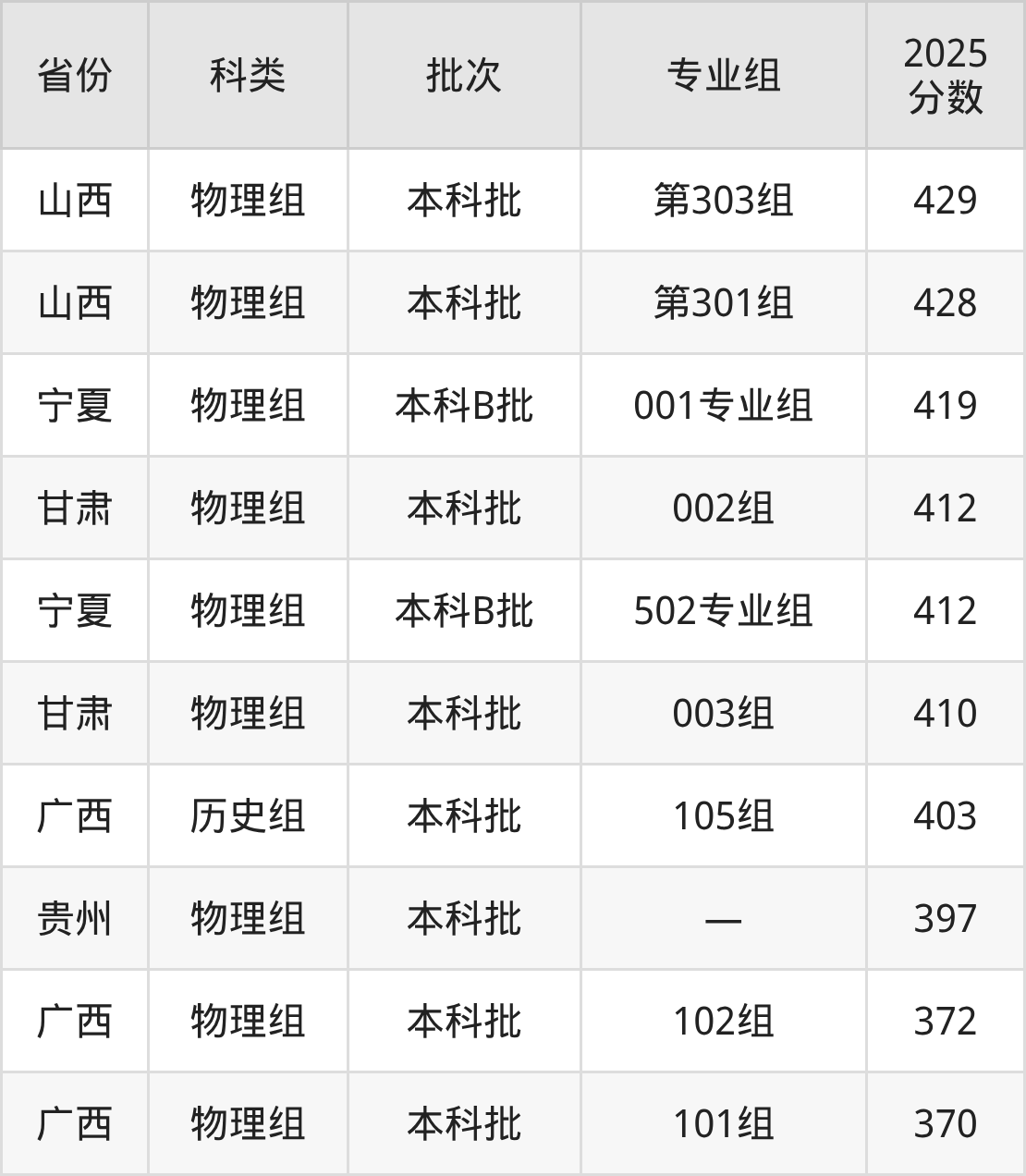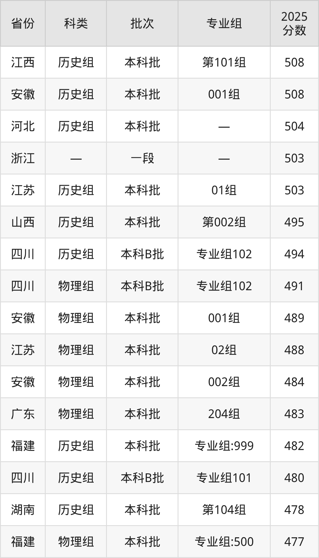 而江西地区历史组考生的分数门槛最高,2025年宁波大学科学技术学院第101组在江西招生最低分为508分,考生至少要超本科线22分才有可能被录取。
