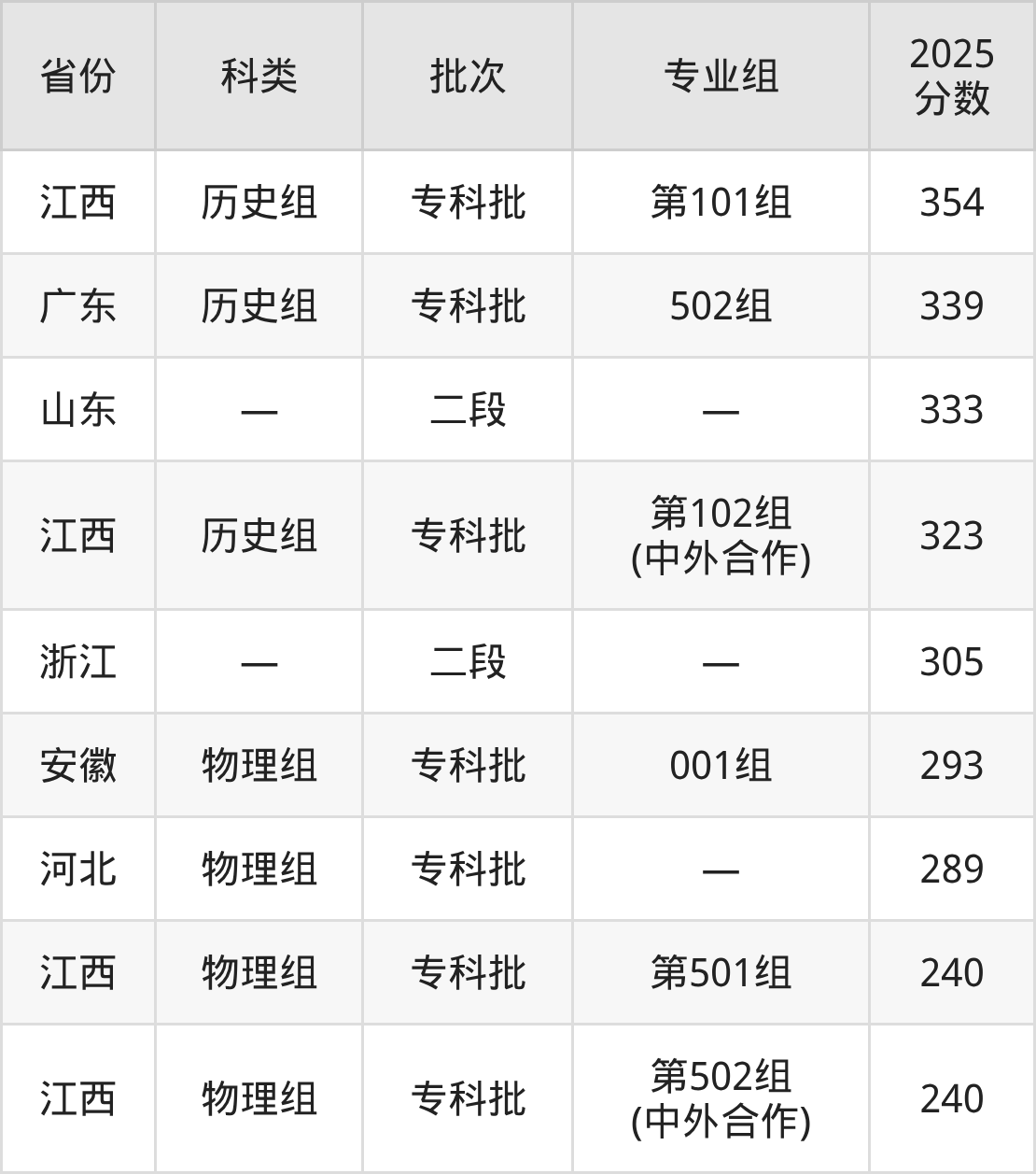 而广东地区历史组考生的分数门槛最高,2025年南昌影视传播职业学院502组在广东招生最低分为339分,考生至少要超专科线124分才有可能被录取。