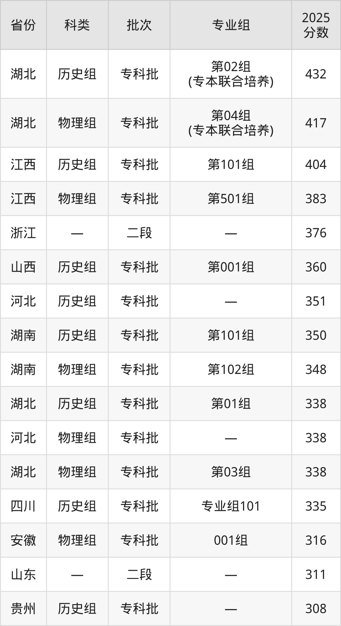 下面是武汉信息传播职业技术学院2025年在全国各省的录取分数线一览表,供参考: