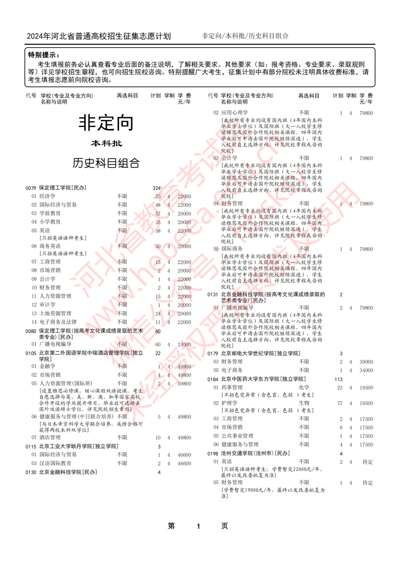由于篇幅有限,这里就不一一列举,可点击上方链接查看2024年河北省本科批征集志愿院校名单。