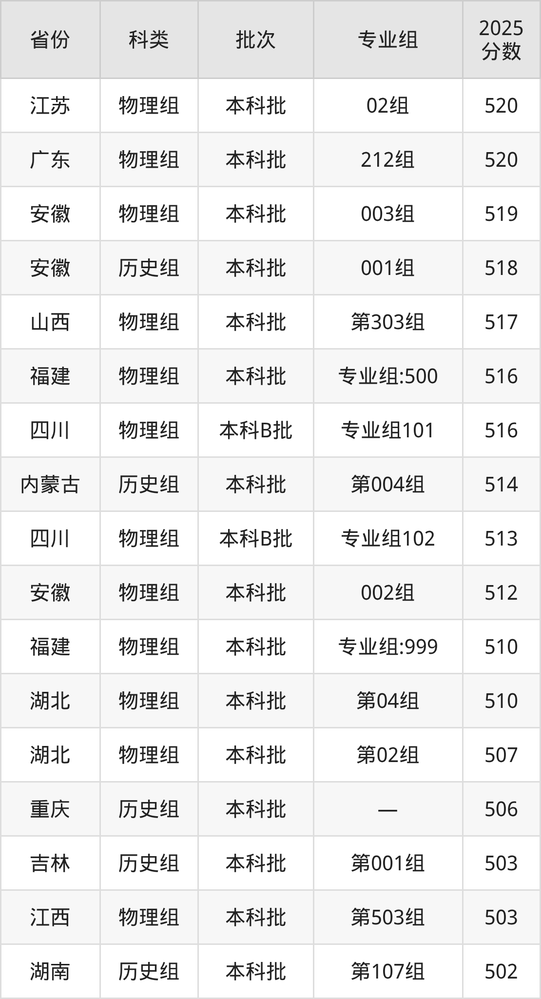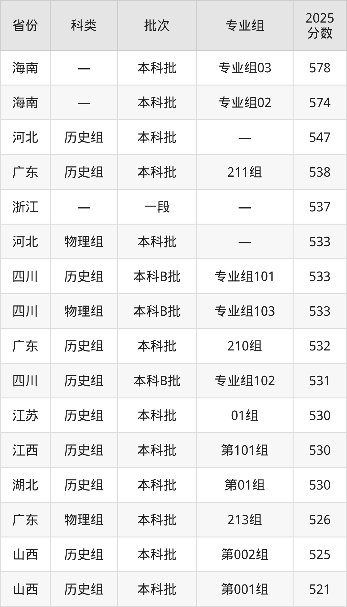 而海南地区考生的分数门槛最高,2025年武汉体育学院专业组03在海南招生最低分为578分,考生至少要超本科线98分才有可能被录取。