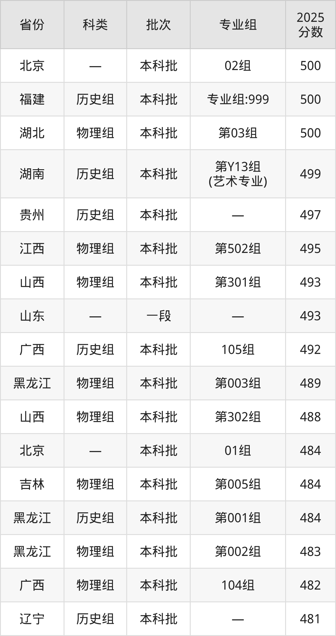 下面是武汉体育学院2025年在全国各省的录取分数线一览表,供参考: