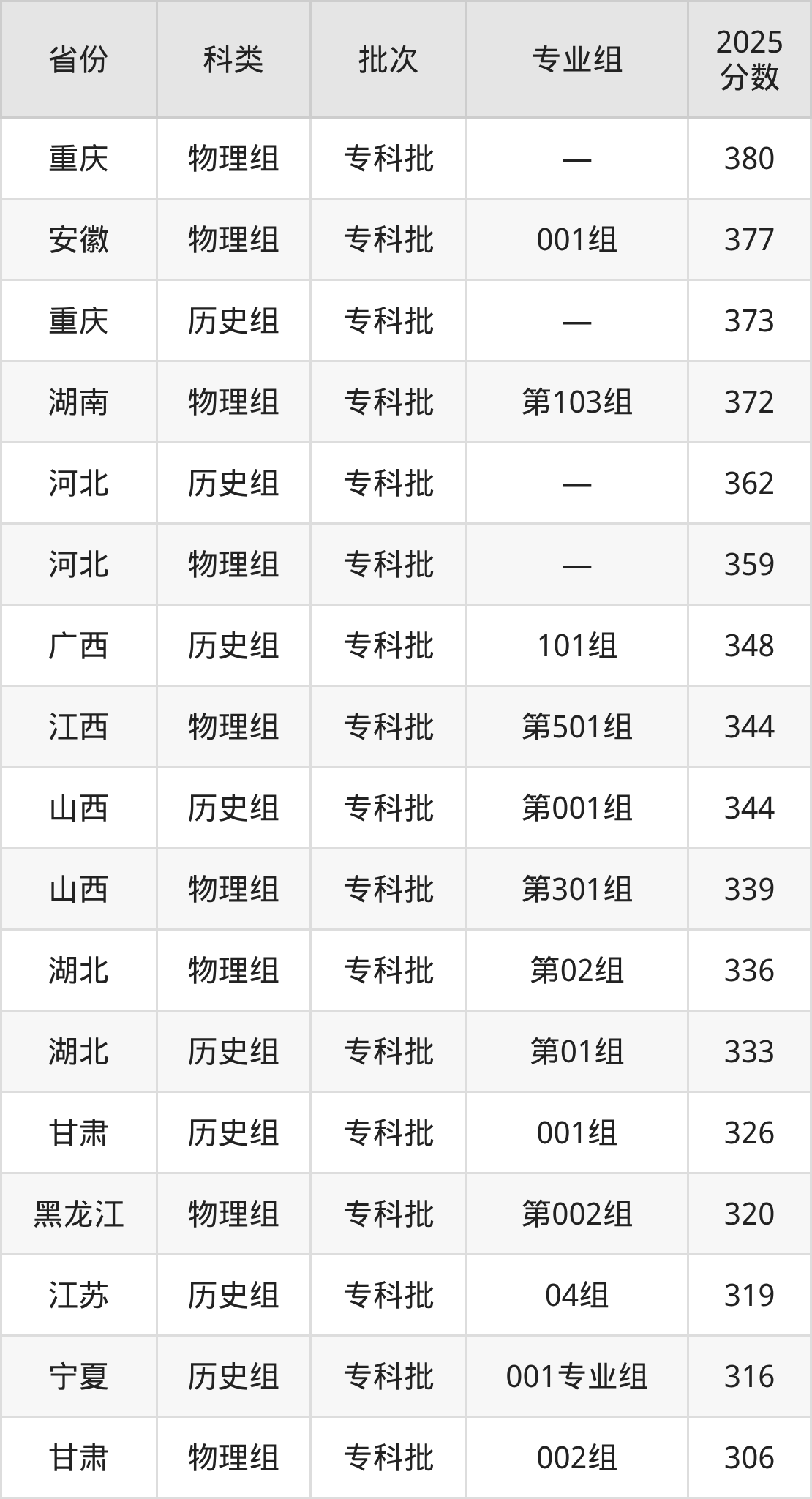 下面是盐城幼儿师范高等专科学校2025年在全国各省的录取分数线一览表,供参考: