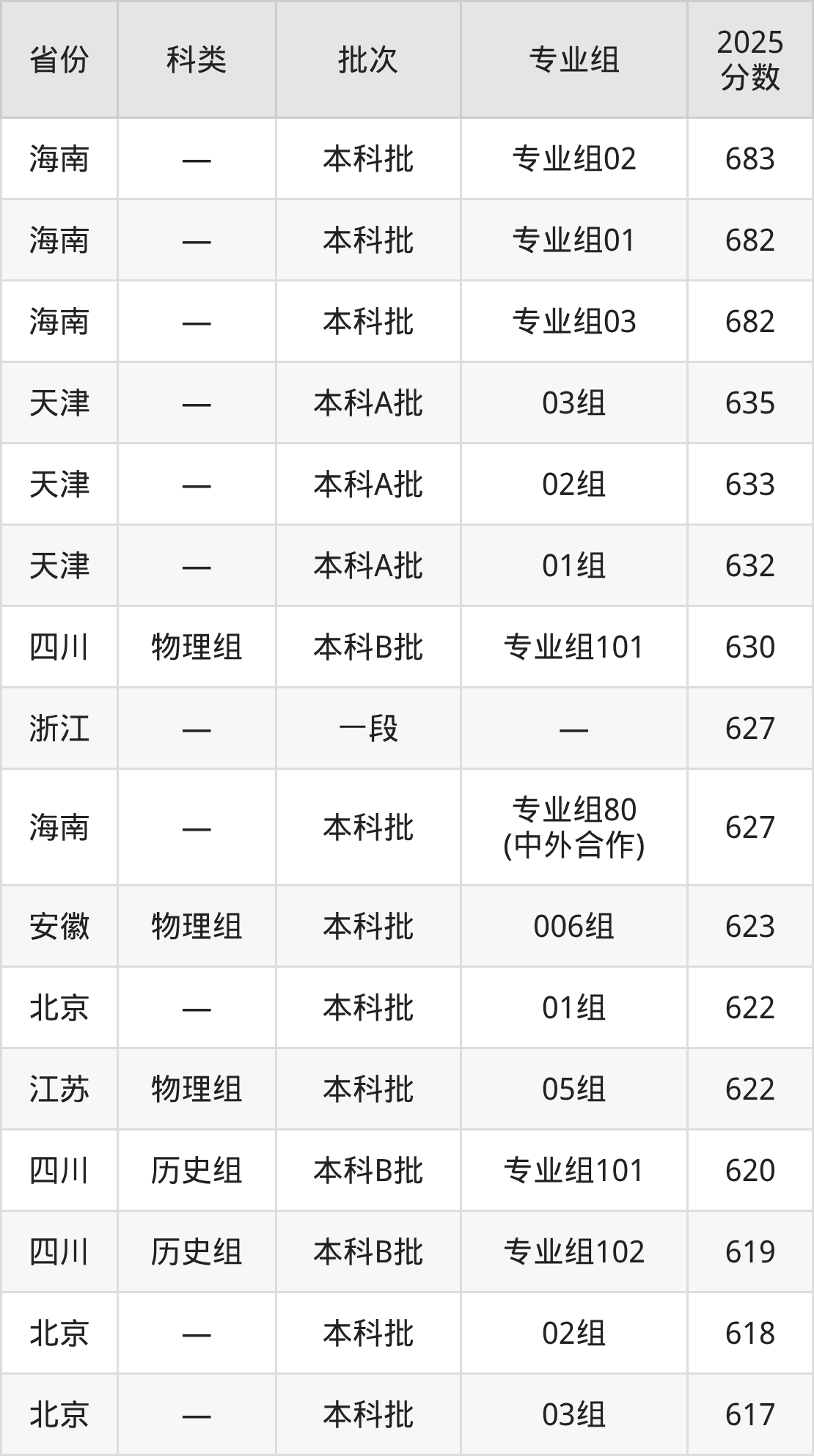 而海南地区考生的分数门槛最高,2025年西南财经大学专业组02在海南招生最低分为683分,考生至少要超本科线203分才有可能被录取。