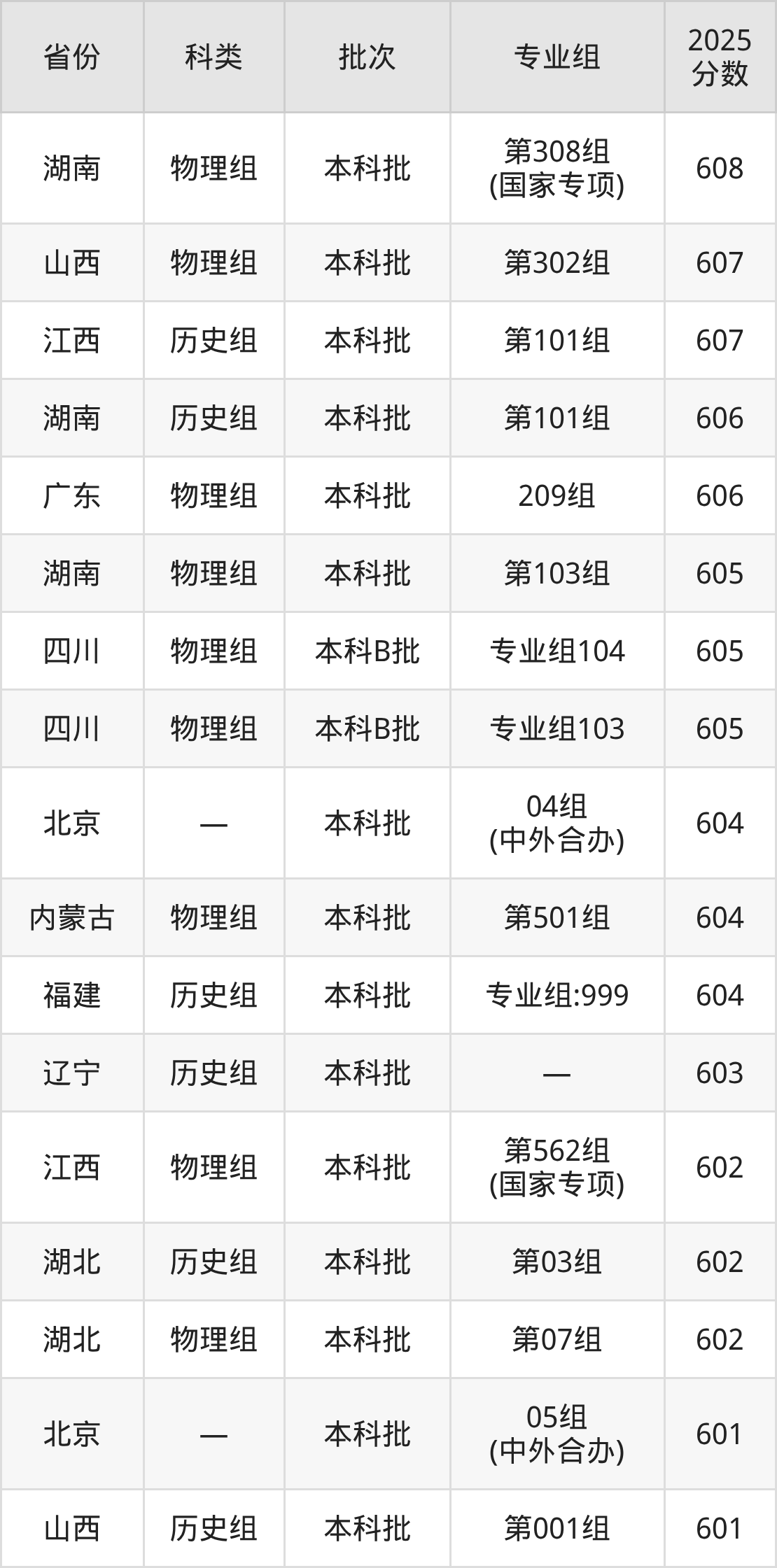 2025年西南财经大学在全国普通批次招生的录取分数范围位于517~683分之间,其中省内分数范围为573分~630分,物理组最低分专业组为“专业组105(中外合作)”,考生573分即可报考,历史组最低分专业组为“专业组105(中外合作)”,考生589分即可报考。