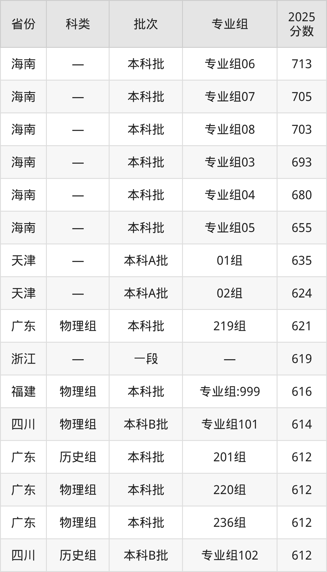 而海南地区考生的分数门槛最高,2025年华南师范大学专业组06在海南招生最低分为713分,考生至少要超本科线233分才有可能被录取。