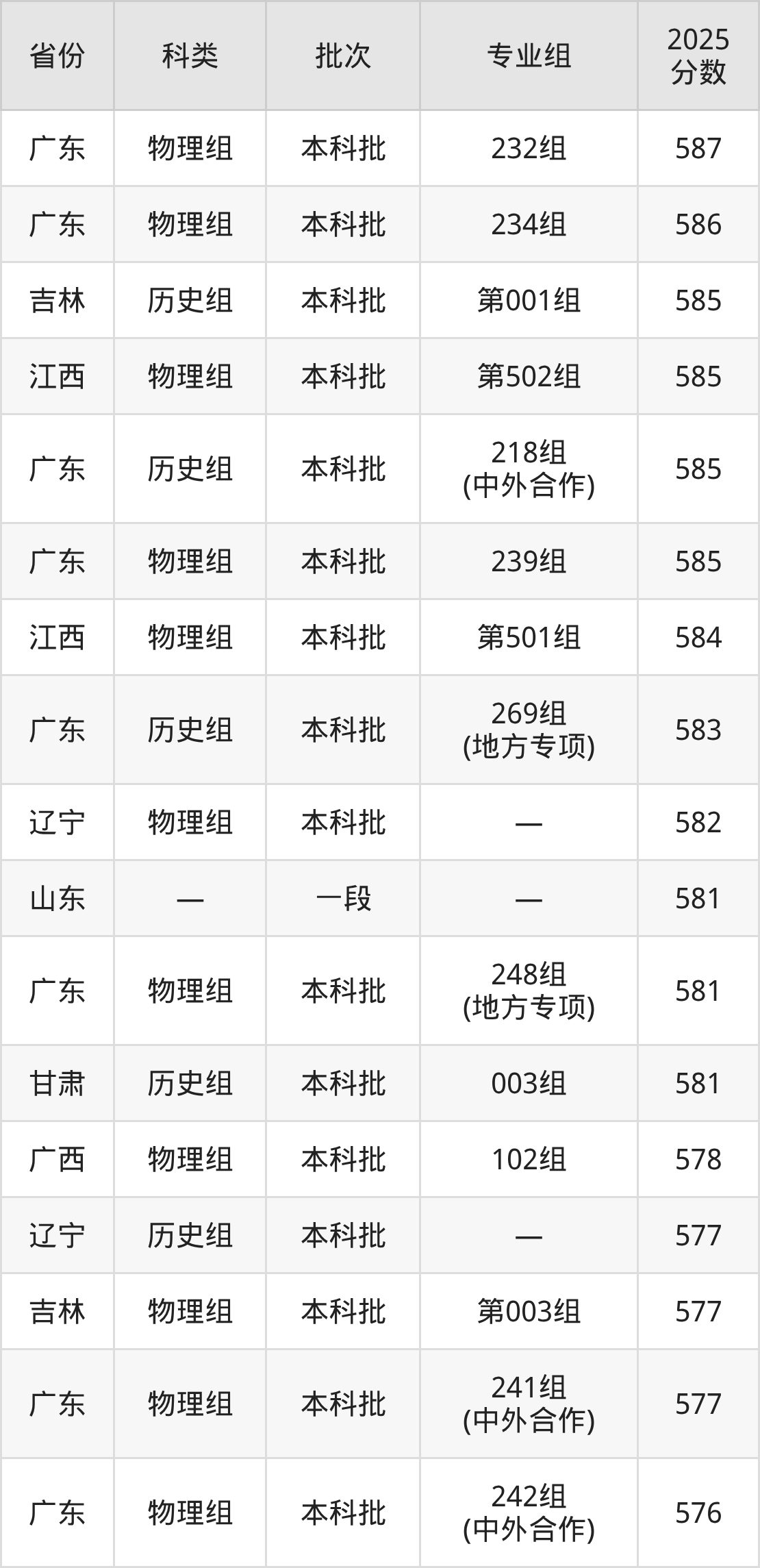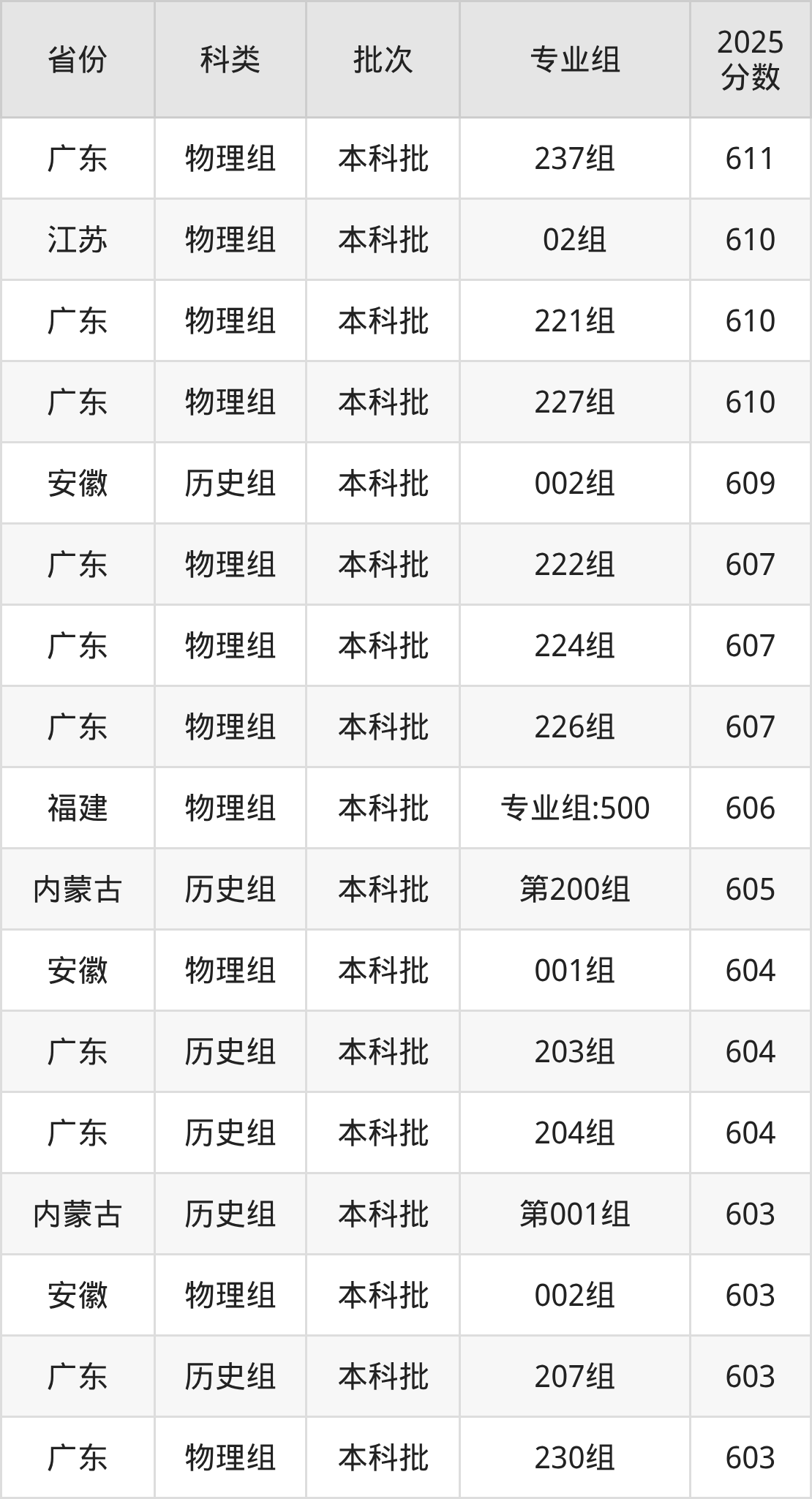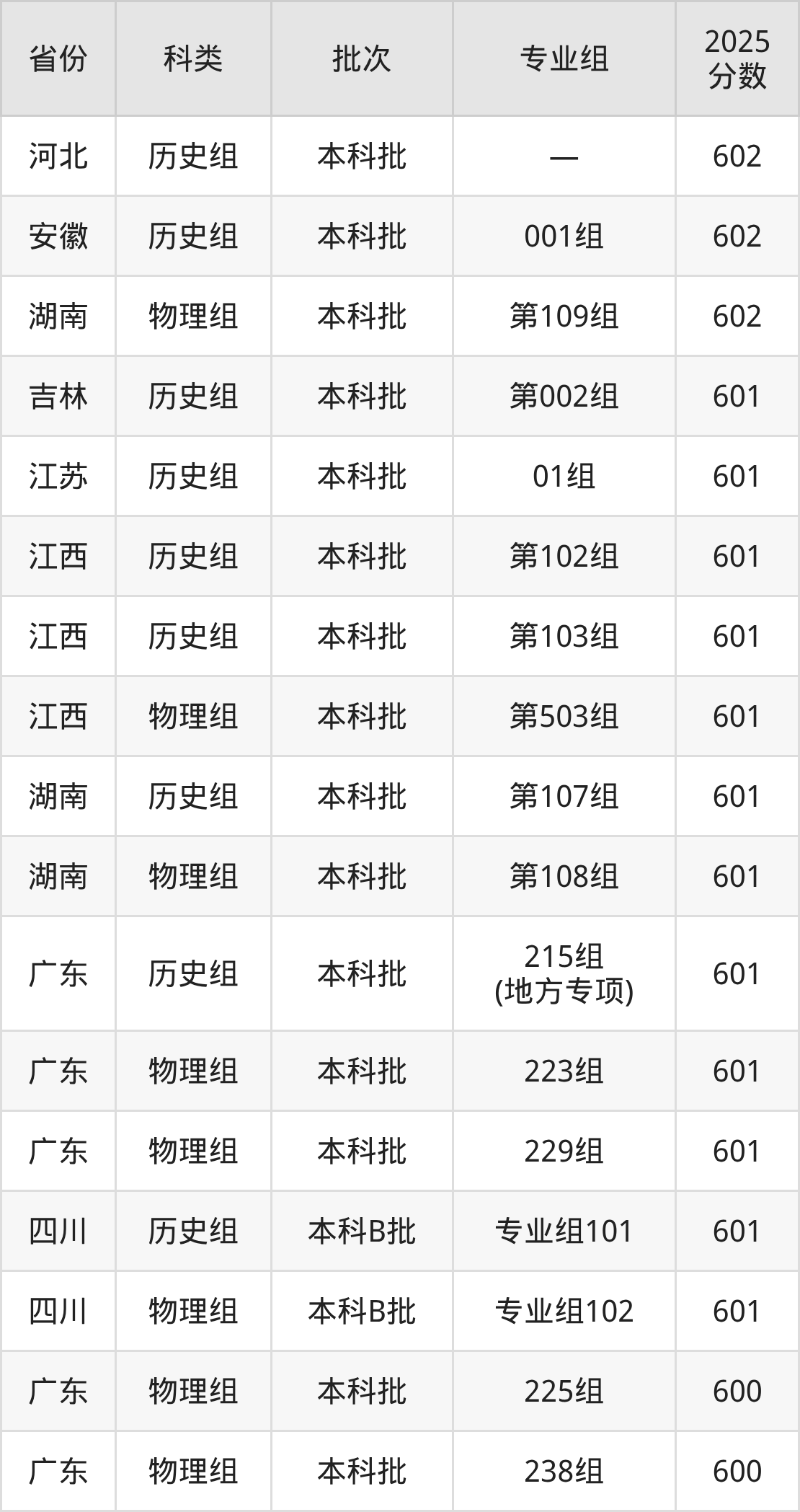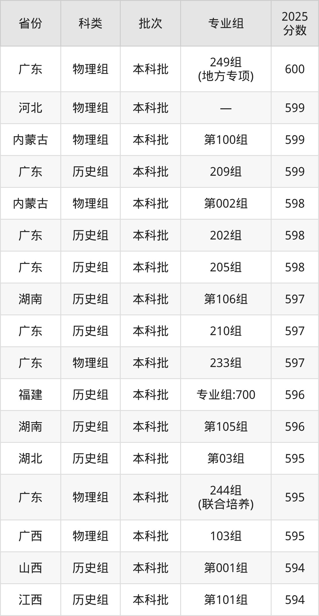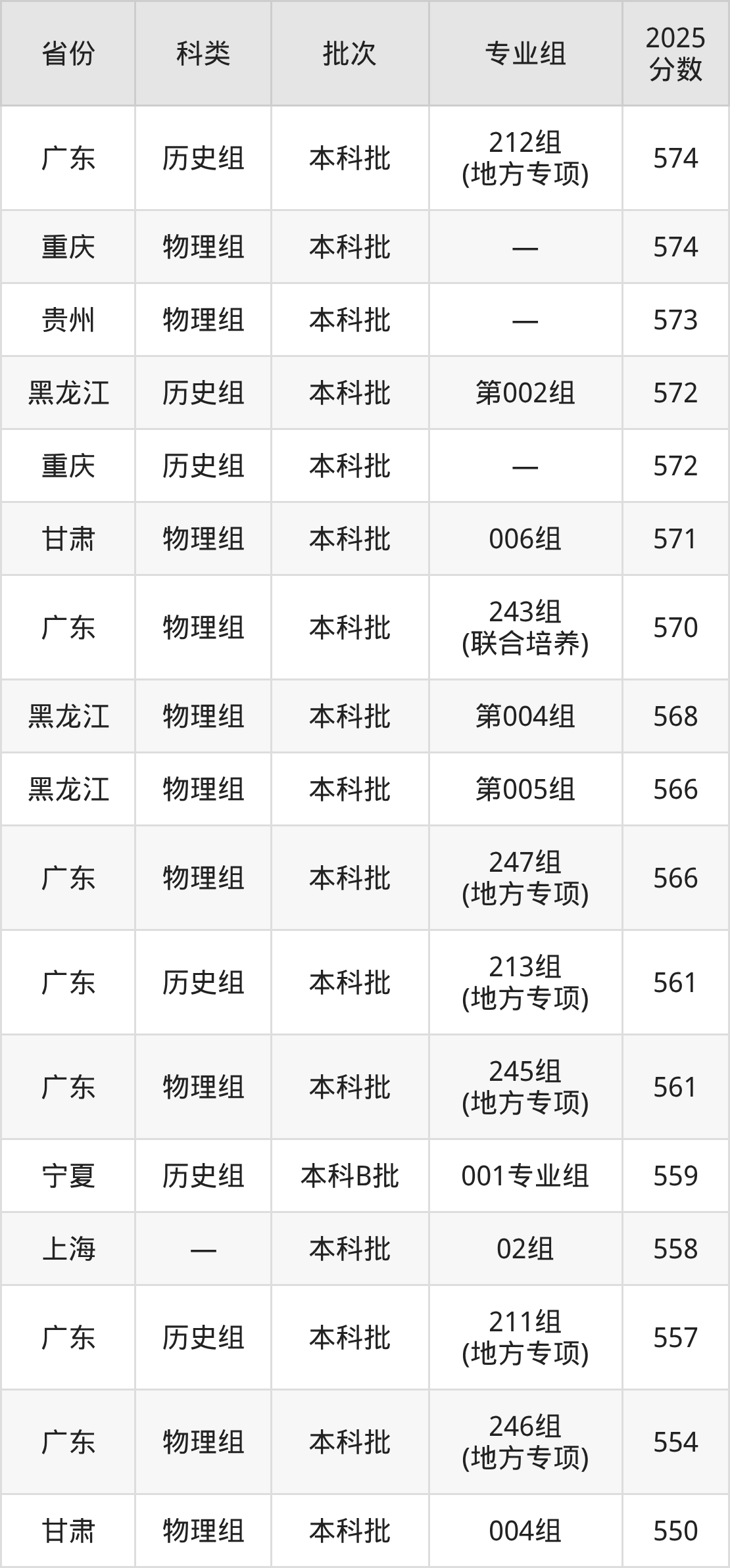 2025年华南师范大学在全国普通批次招生的录取分数范围位于521~713分之间,其中省内分数范围为554分~621分,物理组最低分专业组为“246组(地方专项)”,考生554分即可报考,历史组最低分专业组为“211组(地方专项)”,考生557分即可报考。