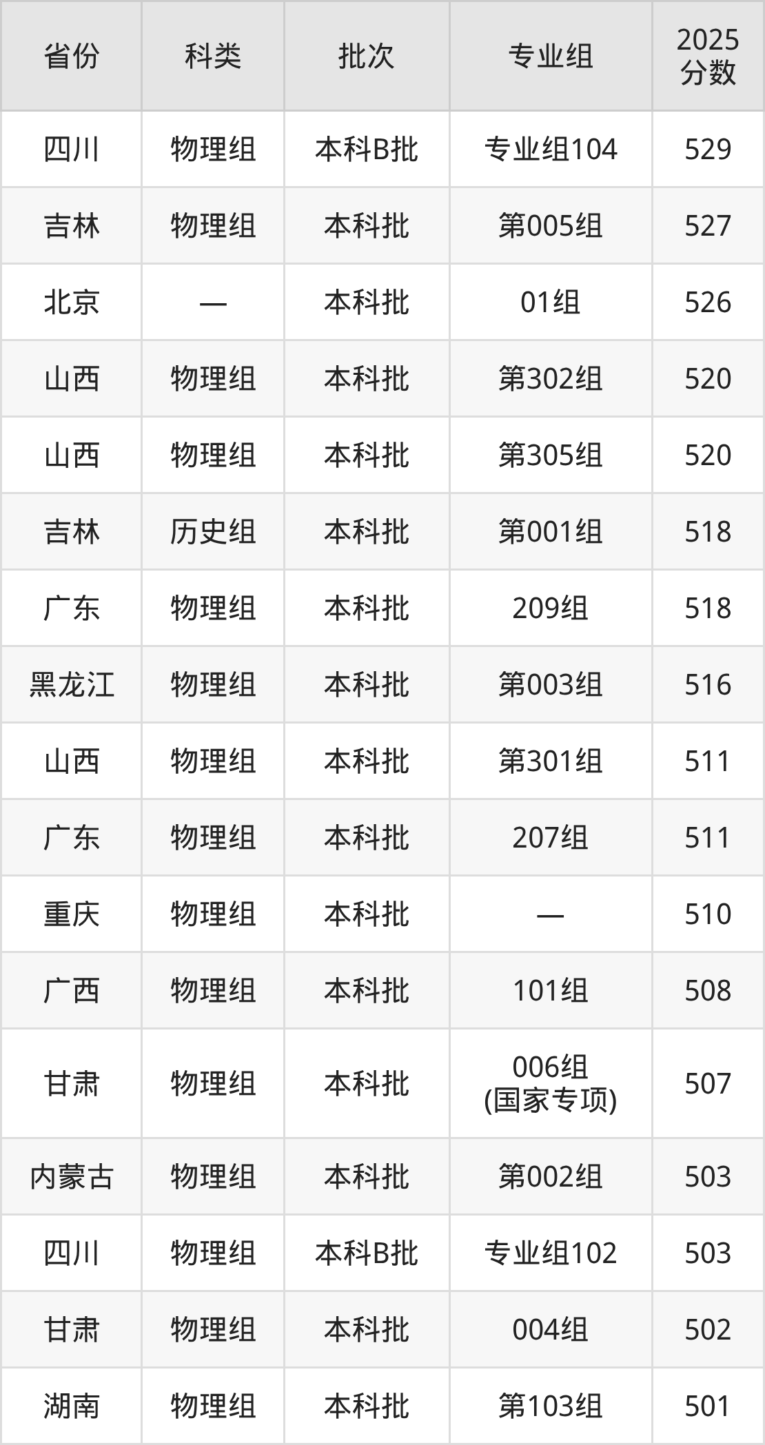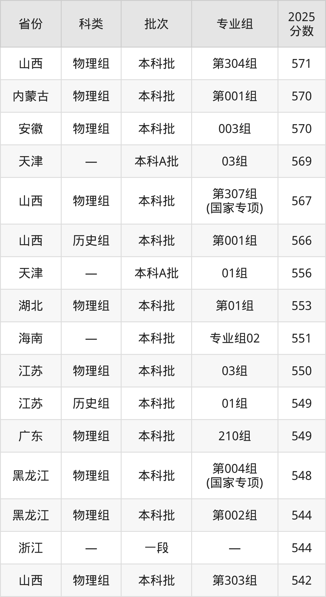 而山西地区物理组考生的分数门槛最高,2025年沈阳工业大学第304组在山西招生最低分为571分,考生至少要超本科线152分才有可能被录取。