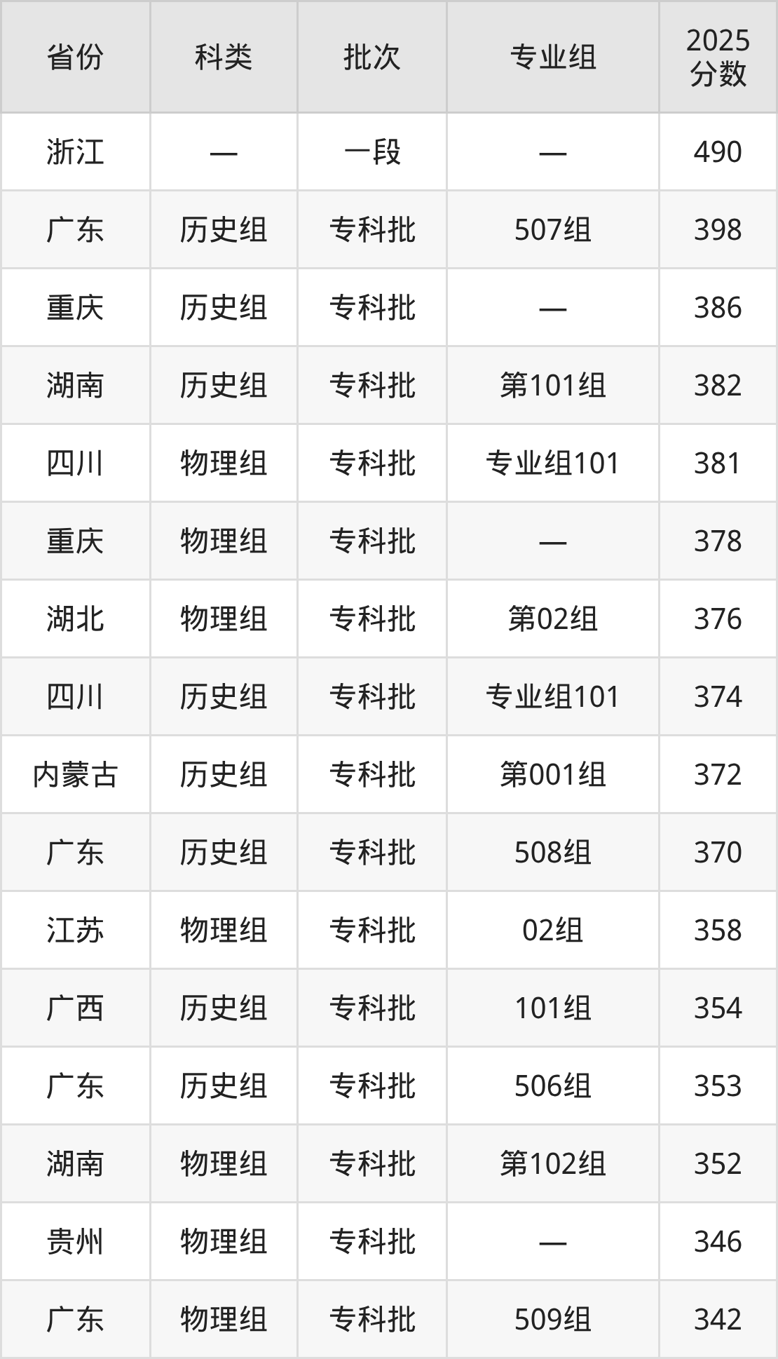 而浙江地区考生的分数门槛最高,2025年上海济光职业技术学院在浙江招生最低分为490分,考生至少要超一段线0分才有可能被录取。