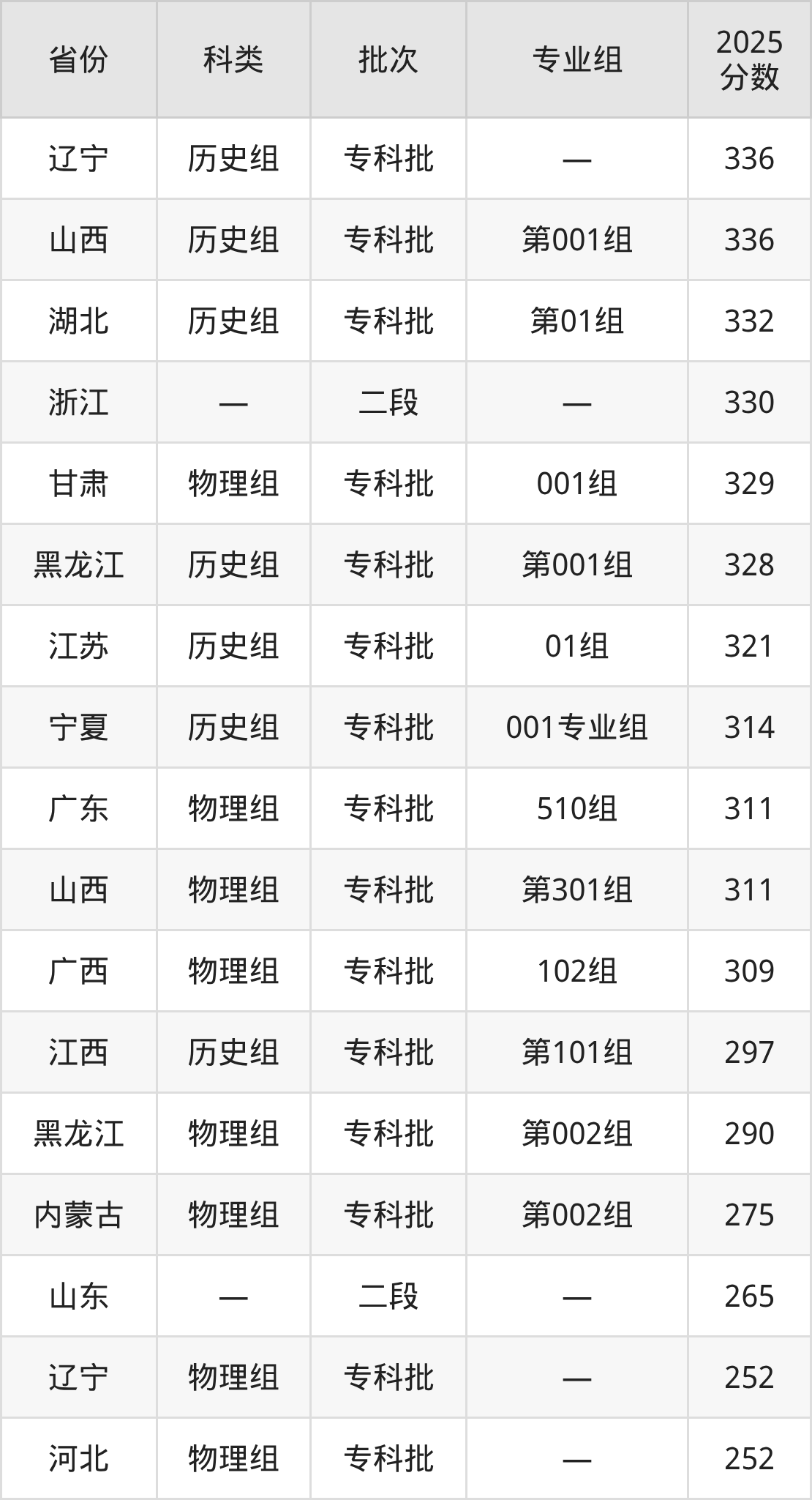 下面是上海济光职业技术学院2025年在全国各省的录取分数线一览表,供参考: