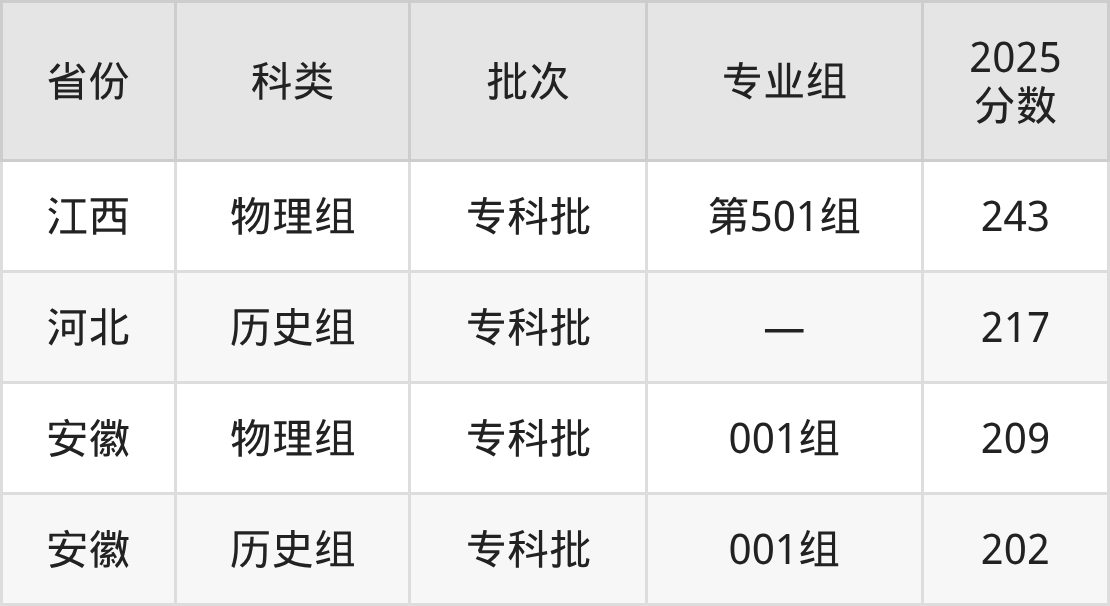 上海济光职业技术学院在市外招生的最低分为202分,其中安徽地区历史组考生上上海济光职业技术学院的分数门槛最低,考生成绩超专科线2分(202分)可上。其次是河北历史组考生,上上海济光职业技术学院至少要超专科线17分(217分)。