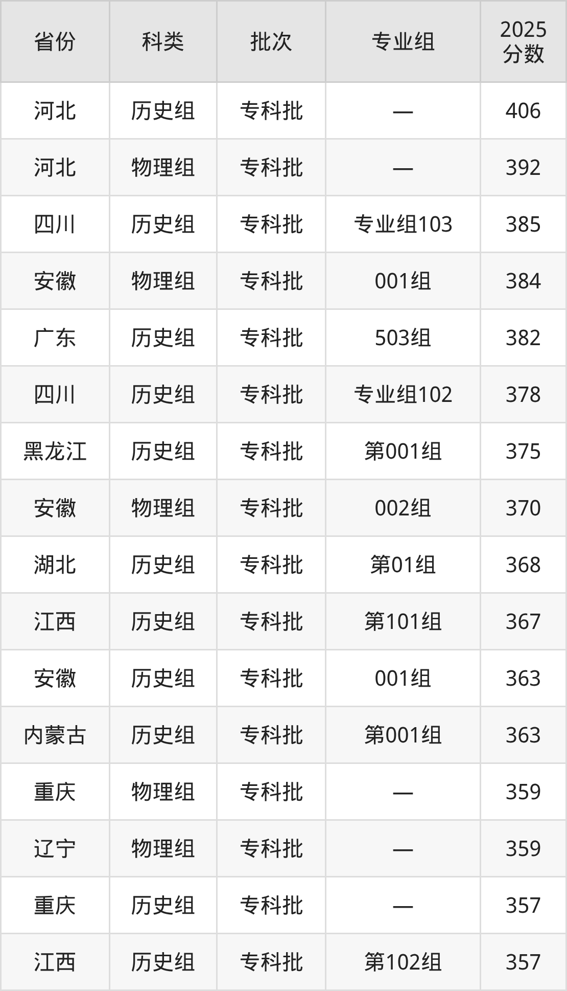 下面是石家庄幼儿师范高等专科学校2025年在全国各省的录取分数线一览表,供参考: