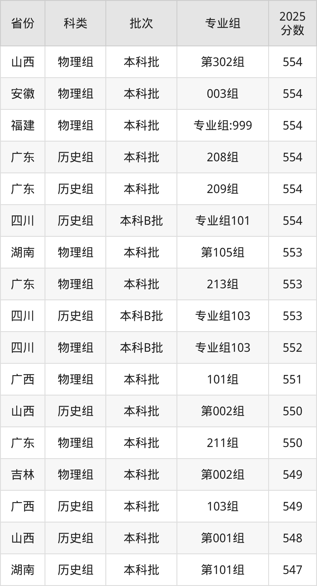 下面是重庆理工大学2025年在全国各省的录取分数线一览表,供参考: