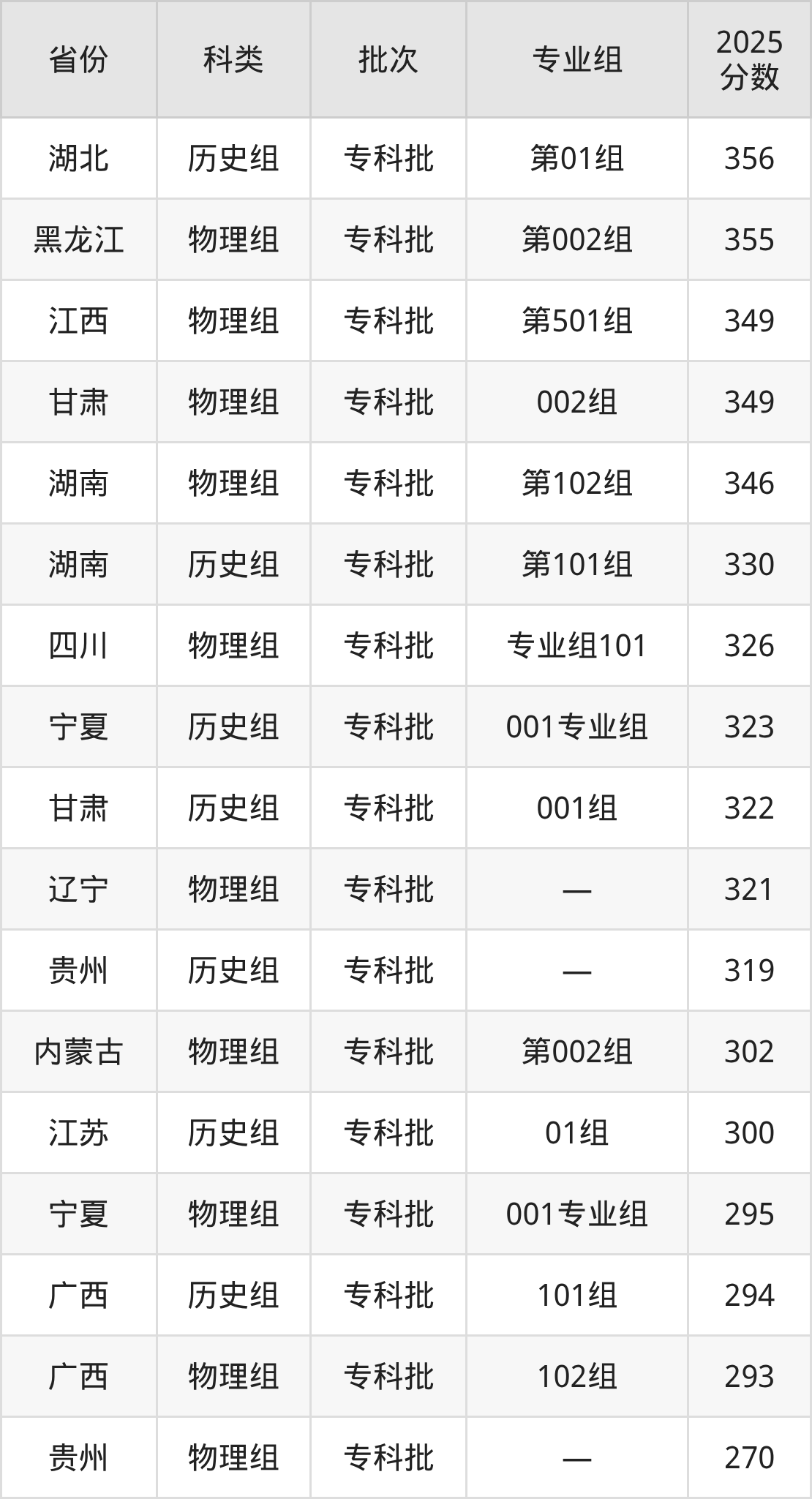 下面是辽宁经济职业技术学院2025年在全国各省的录取分数线一览表,供参考: