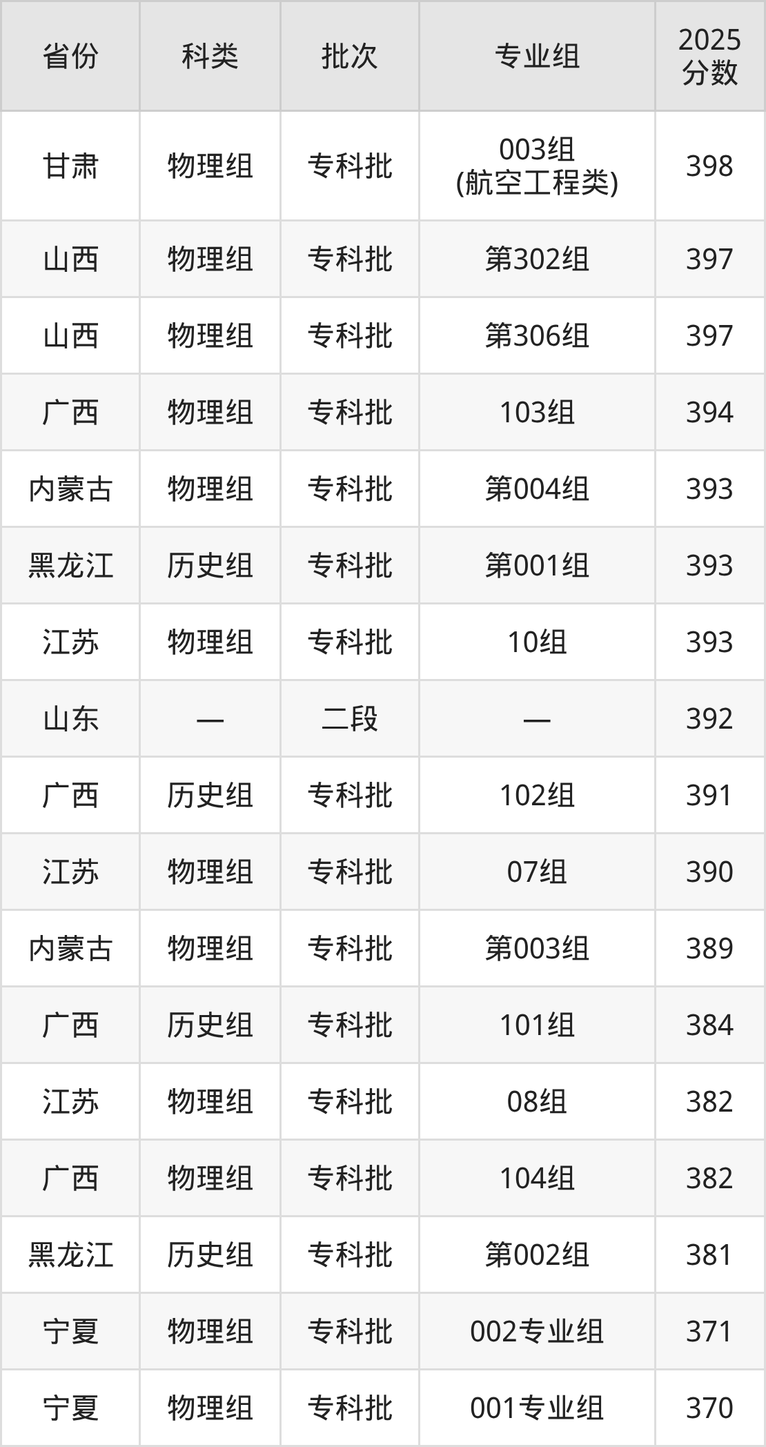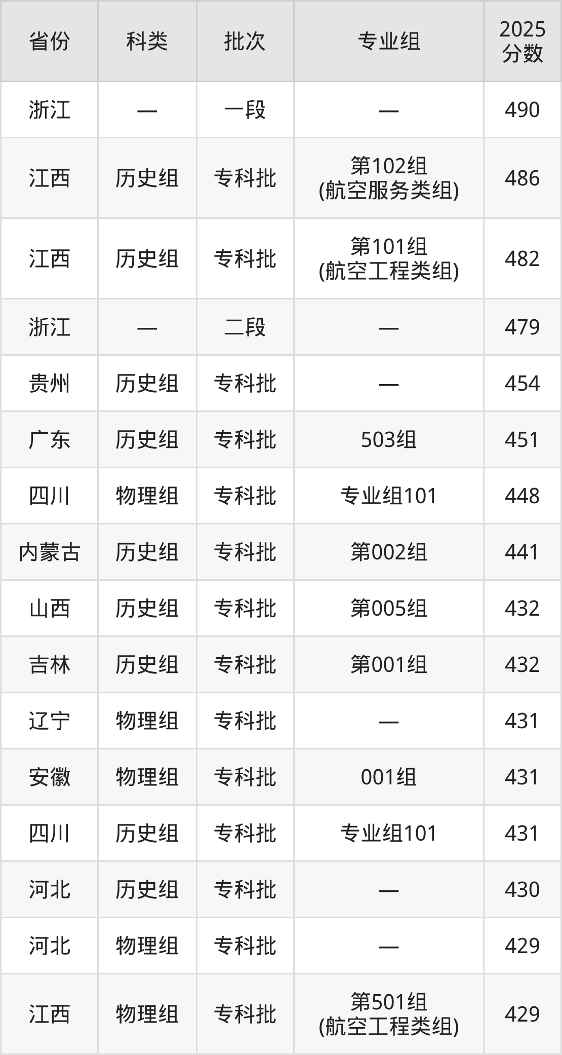而浙江地区考生的分数门槛最高,2025年江苏航空职业技术学院在浙江招生最低分为490分,考生至少要超一段线0分才有可能被录取。