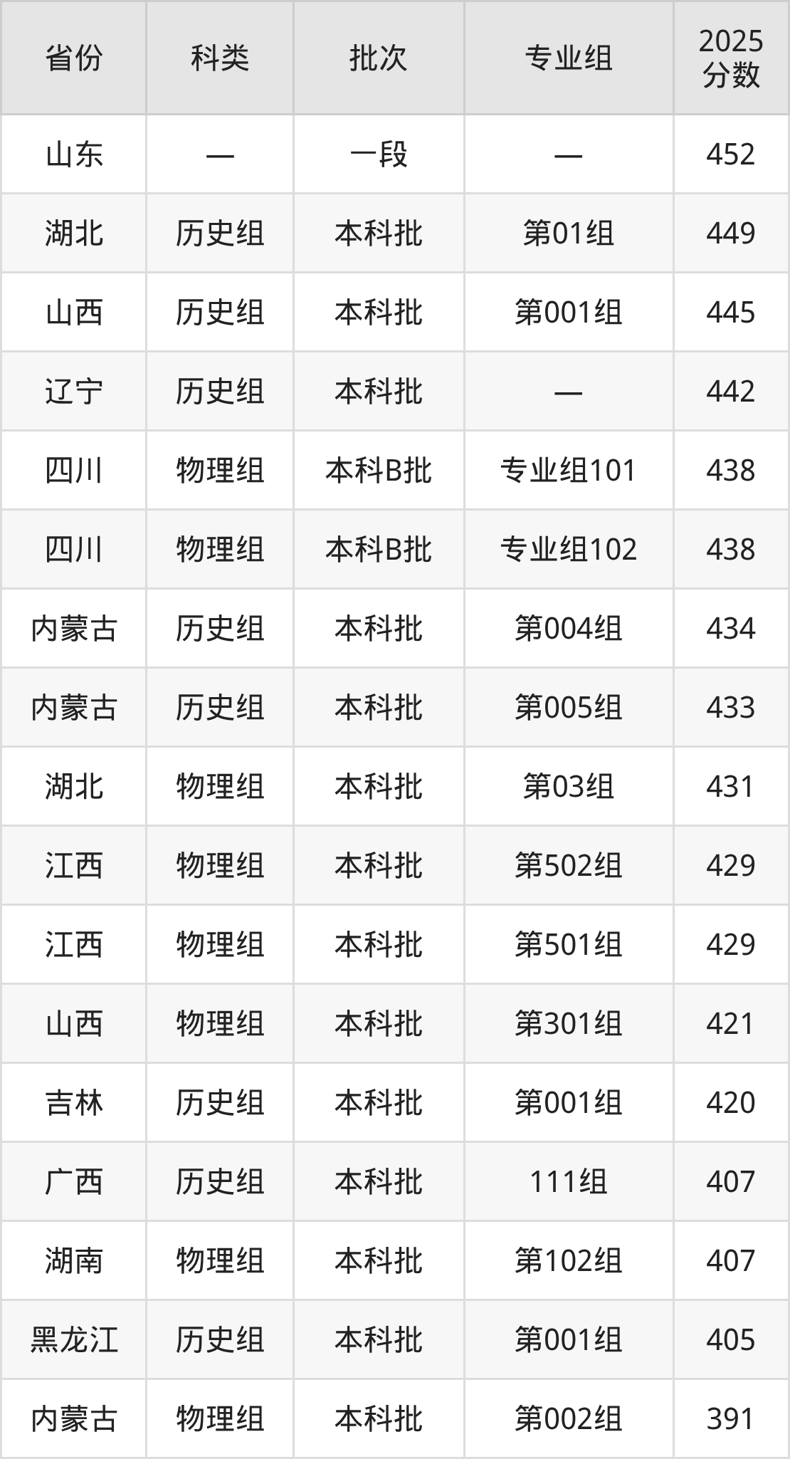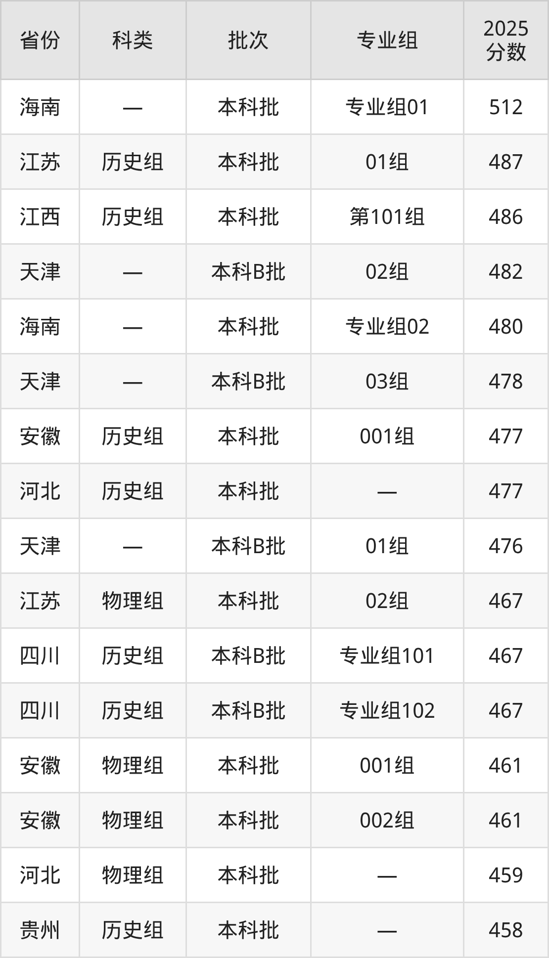 2025年哈尔滨石油学院在全国普通批次招生的录取分数范围位于360~512分之间,其中省内分数范围为360分~405分,历史组最低分专业组为“第001组”,考生405分即可报考,物理组最低分专业组为“第002组”,考生360分即可报考。