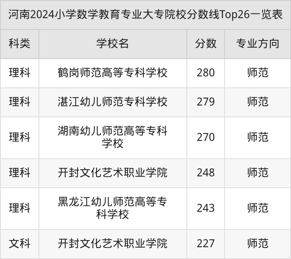 上述院校为有排名的院校,下面根据2024年小学数学教育专业大专招生计划表,列举全部招生院校名单(不同省份招生院校名单及数量有差异,这里以湖南高考为例):