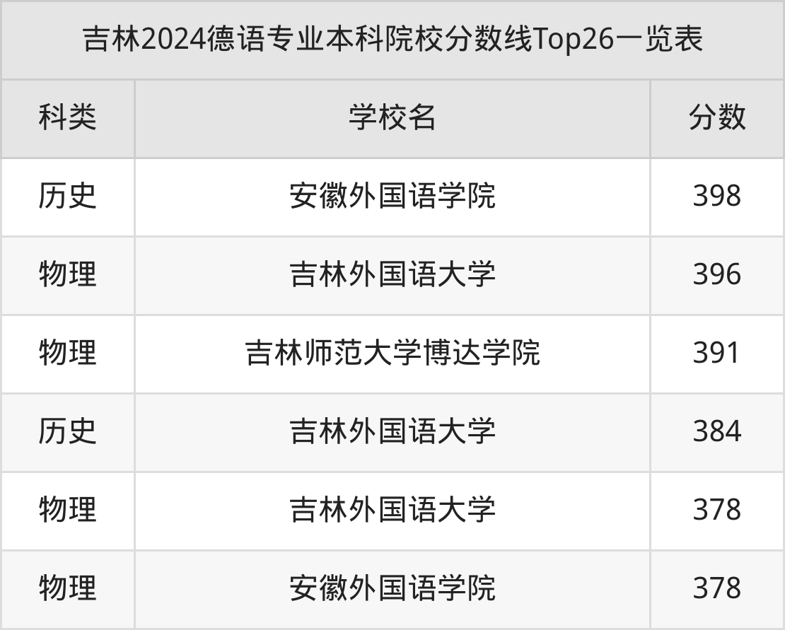 德语专业本科院校实力排名靠前的有北京大学、南京大学、上海外国语大学等。2024年本科德语专业招生最低分数为378分(物理类),而想报考该专业的历史类考生分数至少要在384分以上。